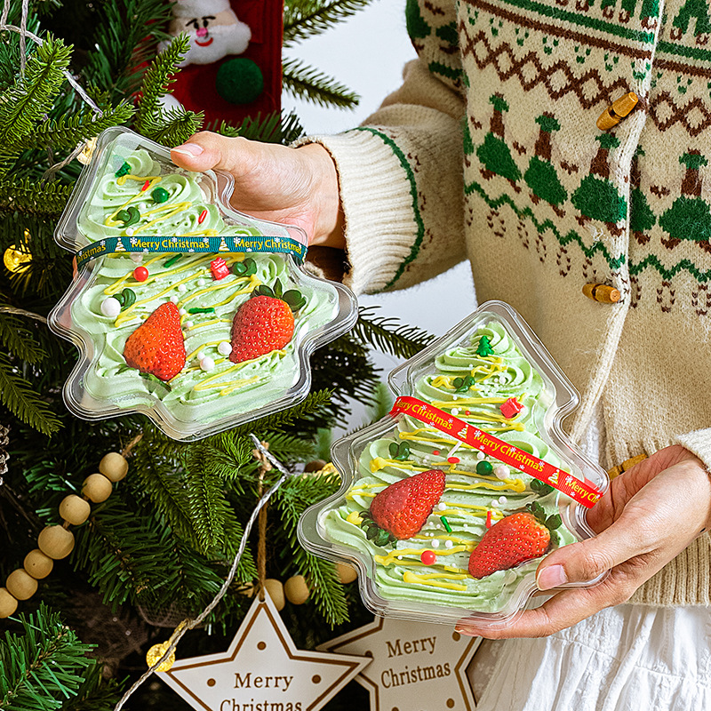 新しいクリスマスクリスマスツリークリエイティブ透明ケーキ包装箱開心果ムースクリームデザート箱