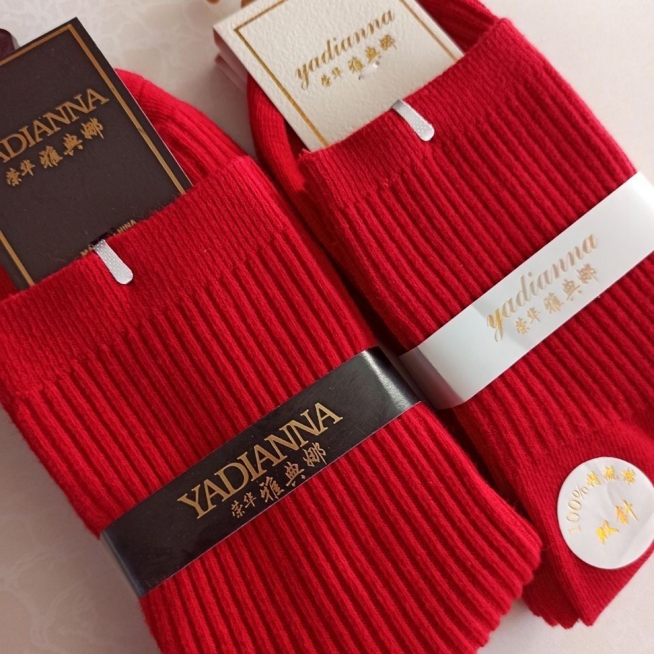 本命年红色袜子男女士纯棉中筒袜结婚情侣一对秋冬季正品棉袜批发