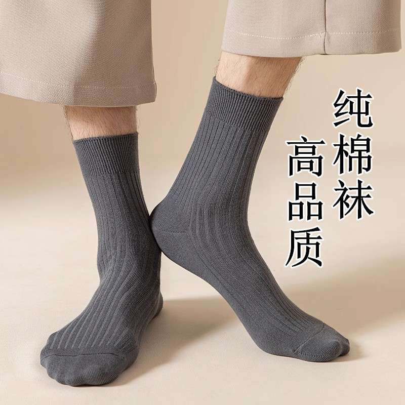 袜子男秋冬款纯棉中筒袜双针竖条男袜抗起球夏天防臭男士商务棉袜