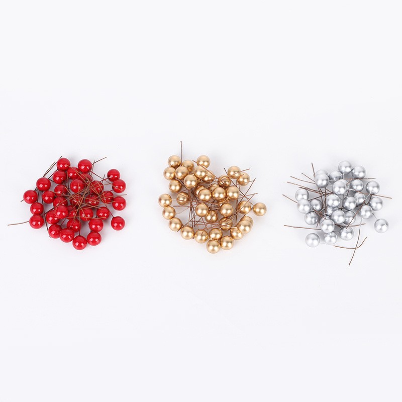 100pcs圣诞红果10mm金属色浆果 圣诞礼品配件浆果DIY植物浆果摆件