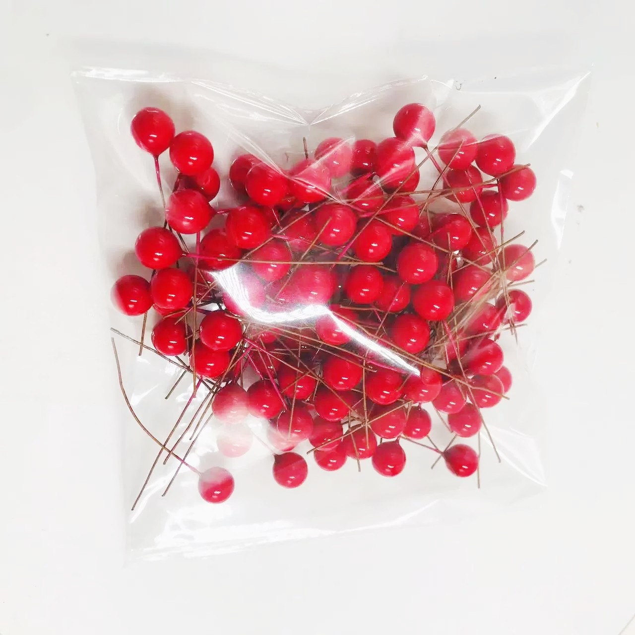 100pcsクリスマスの赤いフルーツの10mmの金属色のベリーのクリスマスのギフトの部品のベリーdiyの植物のベリーの置物