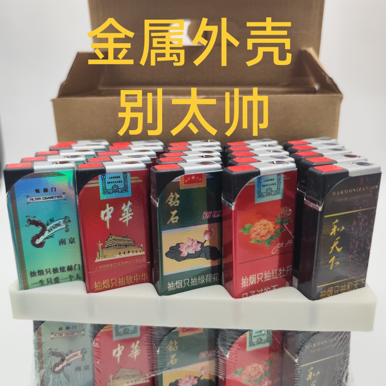 国潮烟盒宽版铁壳金属防风打火机可充气个性高颜值商超批发超划算
