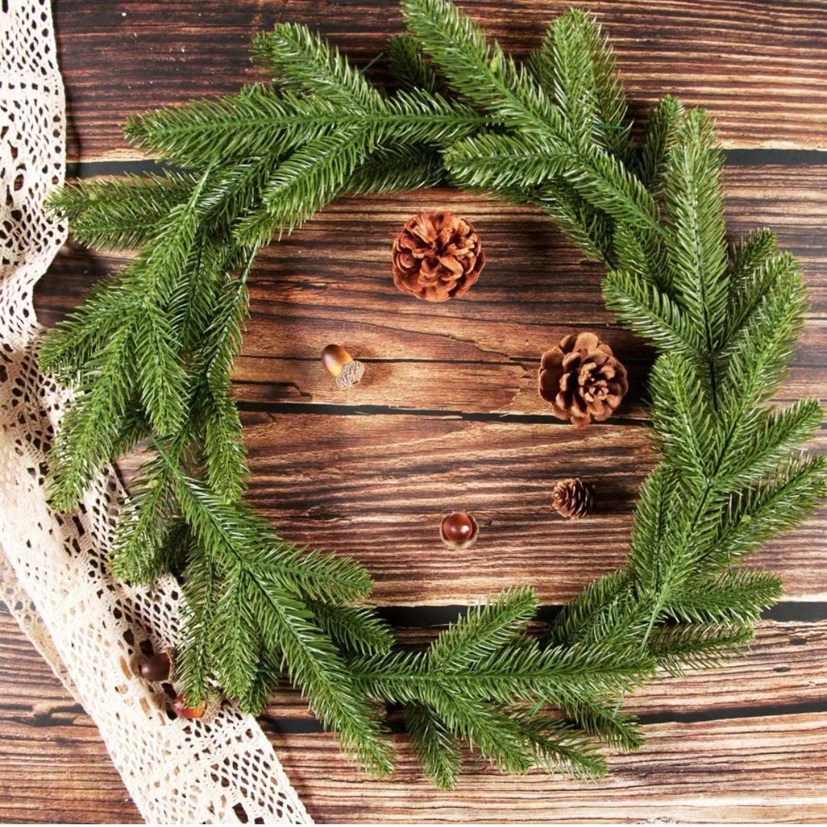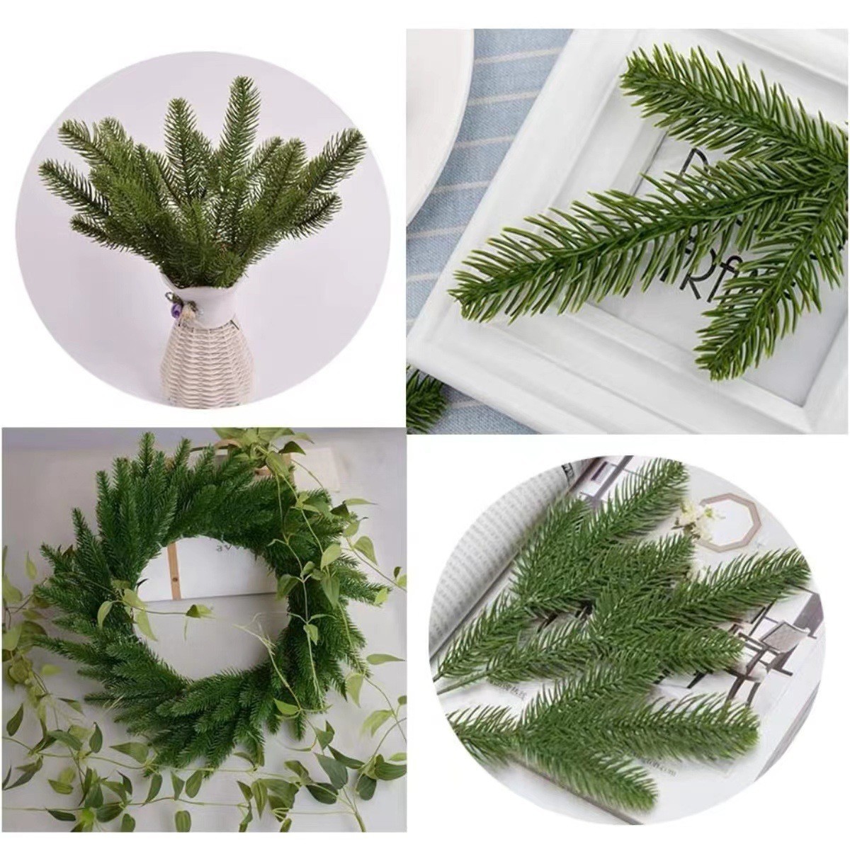 クリスマスシミュレーション松針松果雪花松枝ブラシ白松葉diyクリスマス藤環花輪手作り装飾アクセサリー