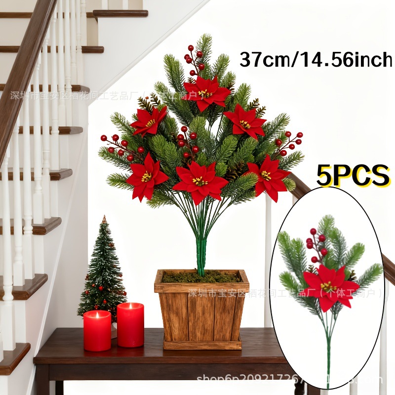 クロスボーダークリスマス挿し木装飾スノーフレーク松葉花の枝アクセサリークリスマスホリデーシミュレーション植物赤い果実ベリー