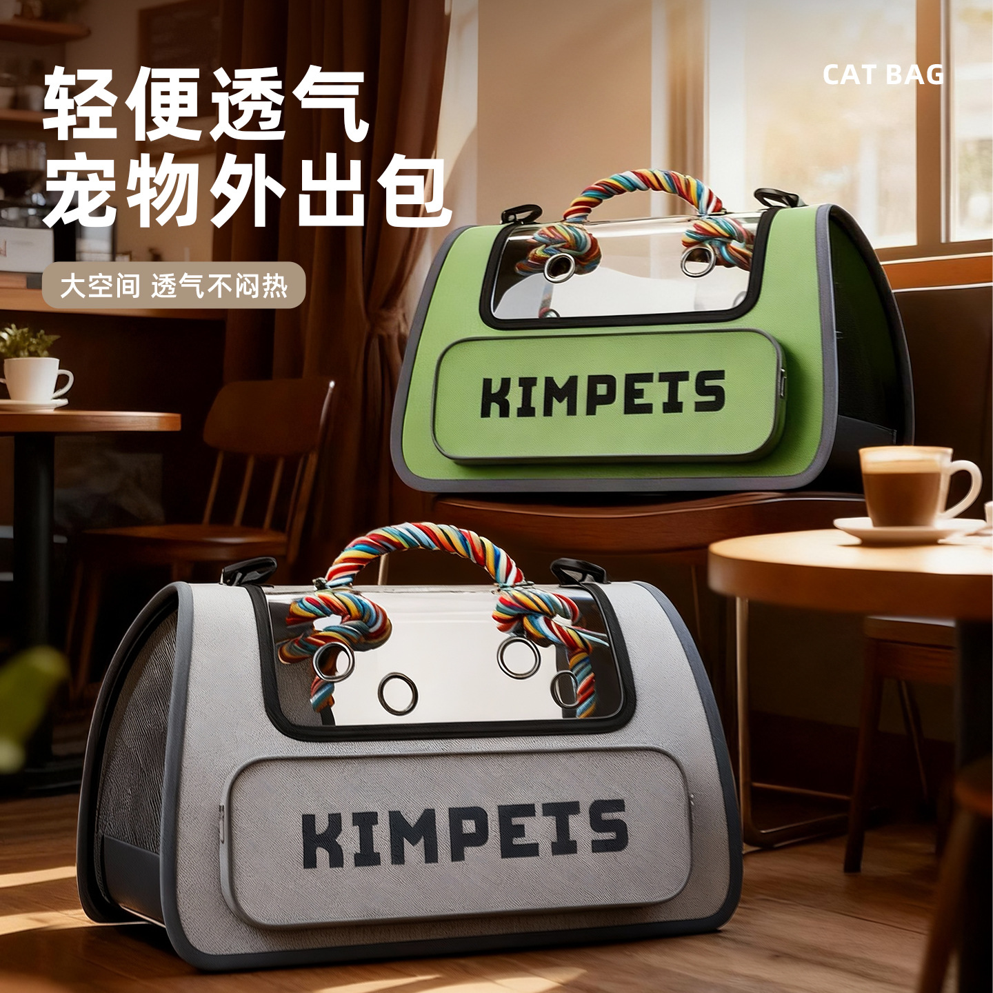 猫包全景透明透气大容量可折叠宠物包猫包外出便携大容量猫包跨境