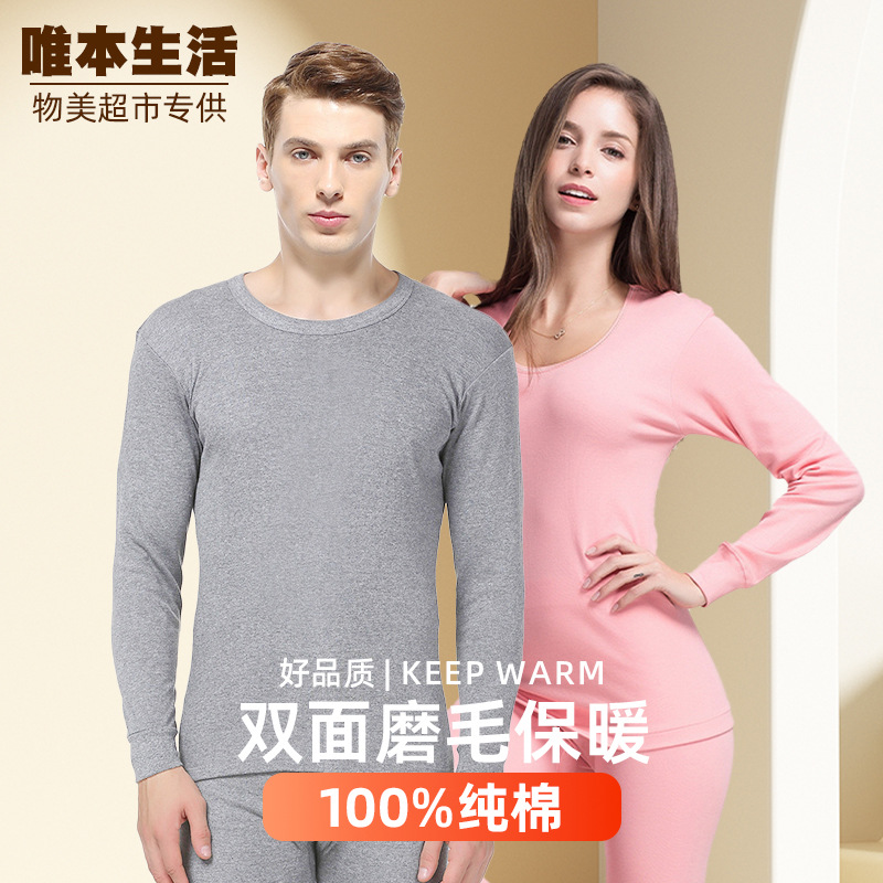 超市专供纯棉秋衣秋裤男女士全棉青少年中老年棉毛衫保暖内衣套装