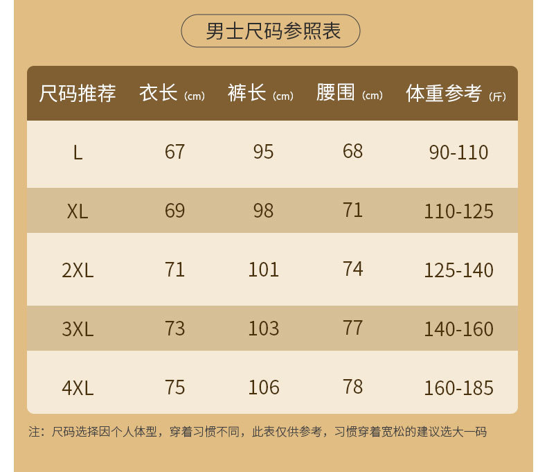 サイズ L (男性90-110斤),Xl (男性110-125斤),2xl (男性125-145斤),3xl (男性145-165斤),4xl (男性165-185斤),M (女性80 ~ 90斤),L(女90-105斤),Xl (女性105-115斤),2xl (女性115 ~ 130斤),3xl (女性130-145斤)