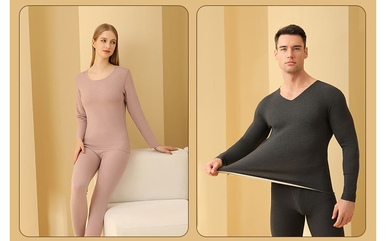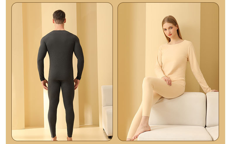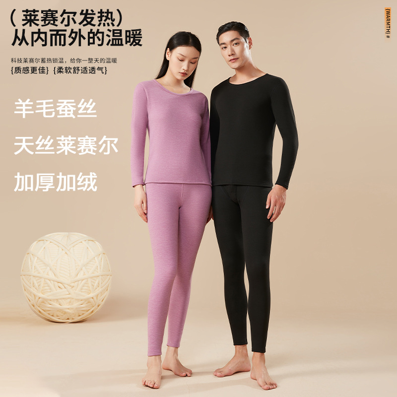 2025 新しいサーマル下着セット秋と冬の男性と女性の秋服と長ズボンウールシルクインナー暖かい服卸売