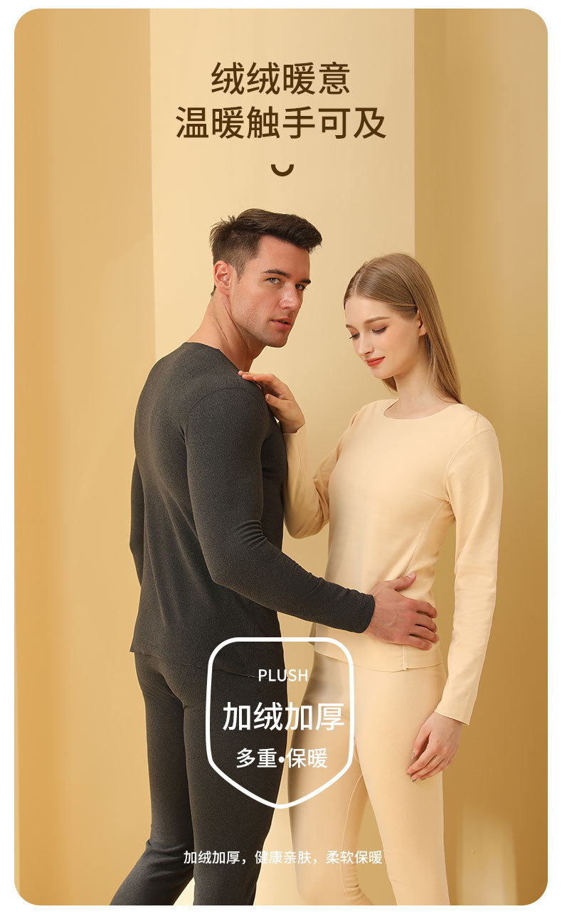 秋冬ライゼル保温下着セット男性ベルベット厚手秋衣秋ズボン防寒修身下着女性インナー