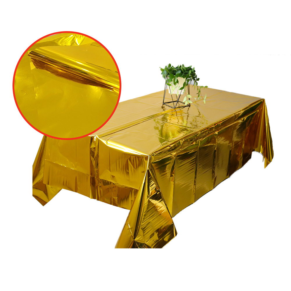 卸売 PE プラスチックテーブルクロス誕生日パーティーの装飾ピクニックキャンプ防水耐油使い捨てゴールドテーブルクロス