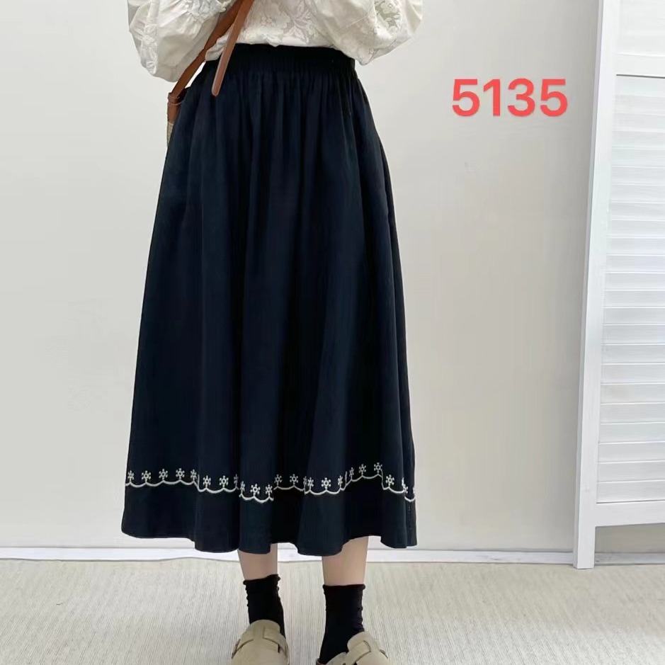 5135刺繍スカート女性刺繍民族風綿麻レトロな中長サイズのスカート