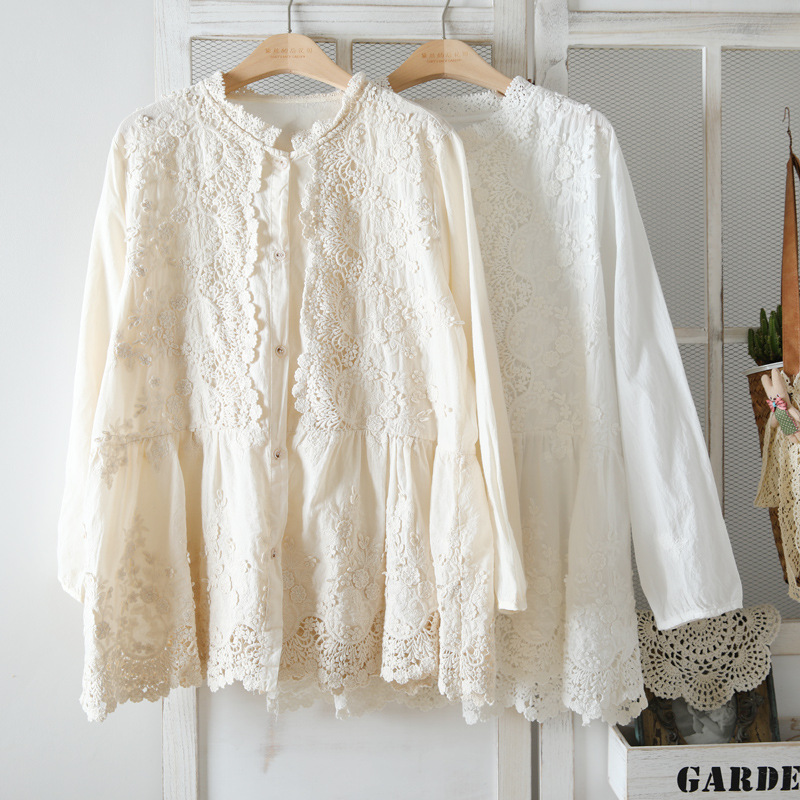 日系女装甘美立体刺繍長袖シャツ女森系ゆるい子供シャツレース文芸上着春