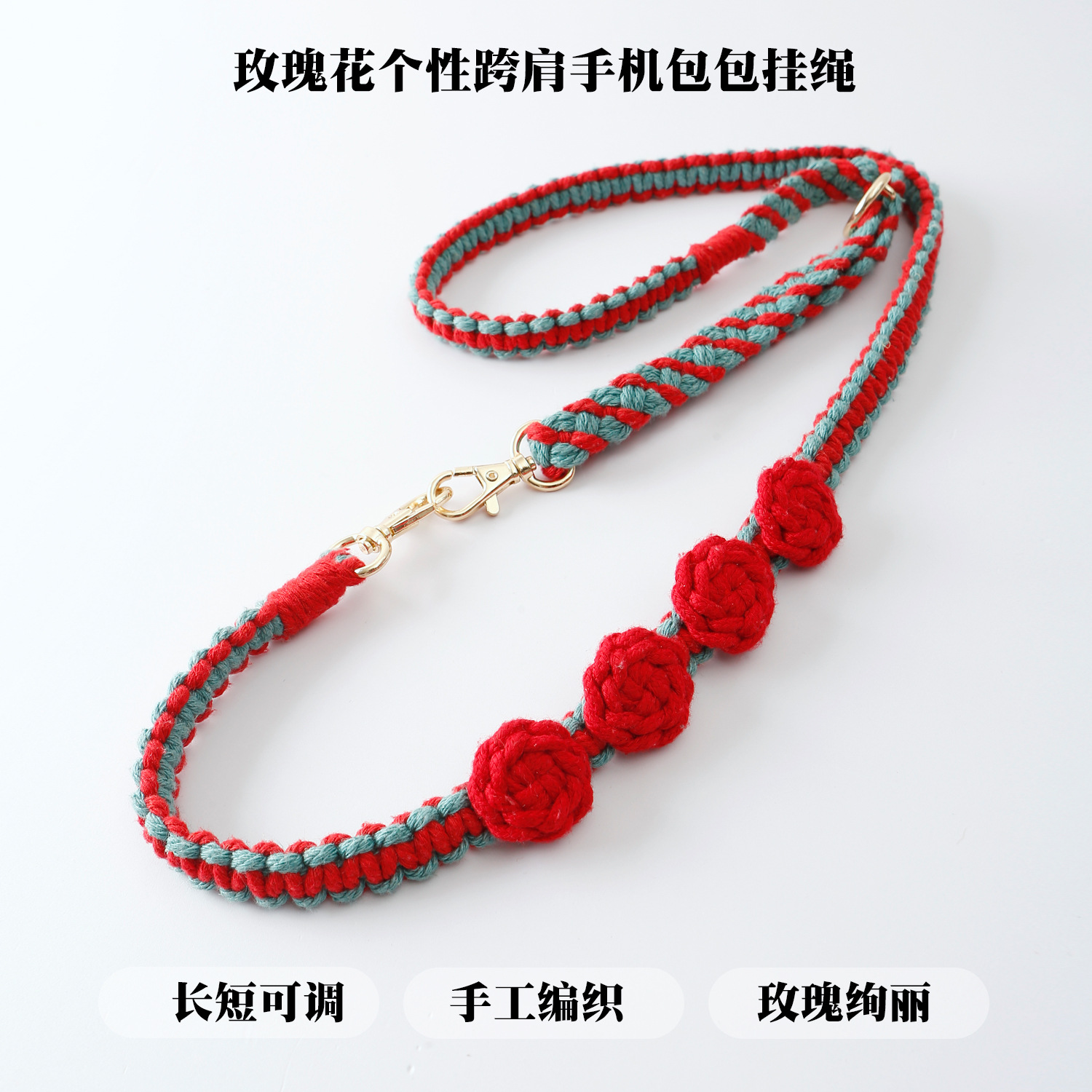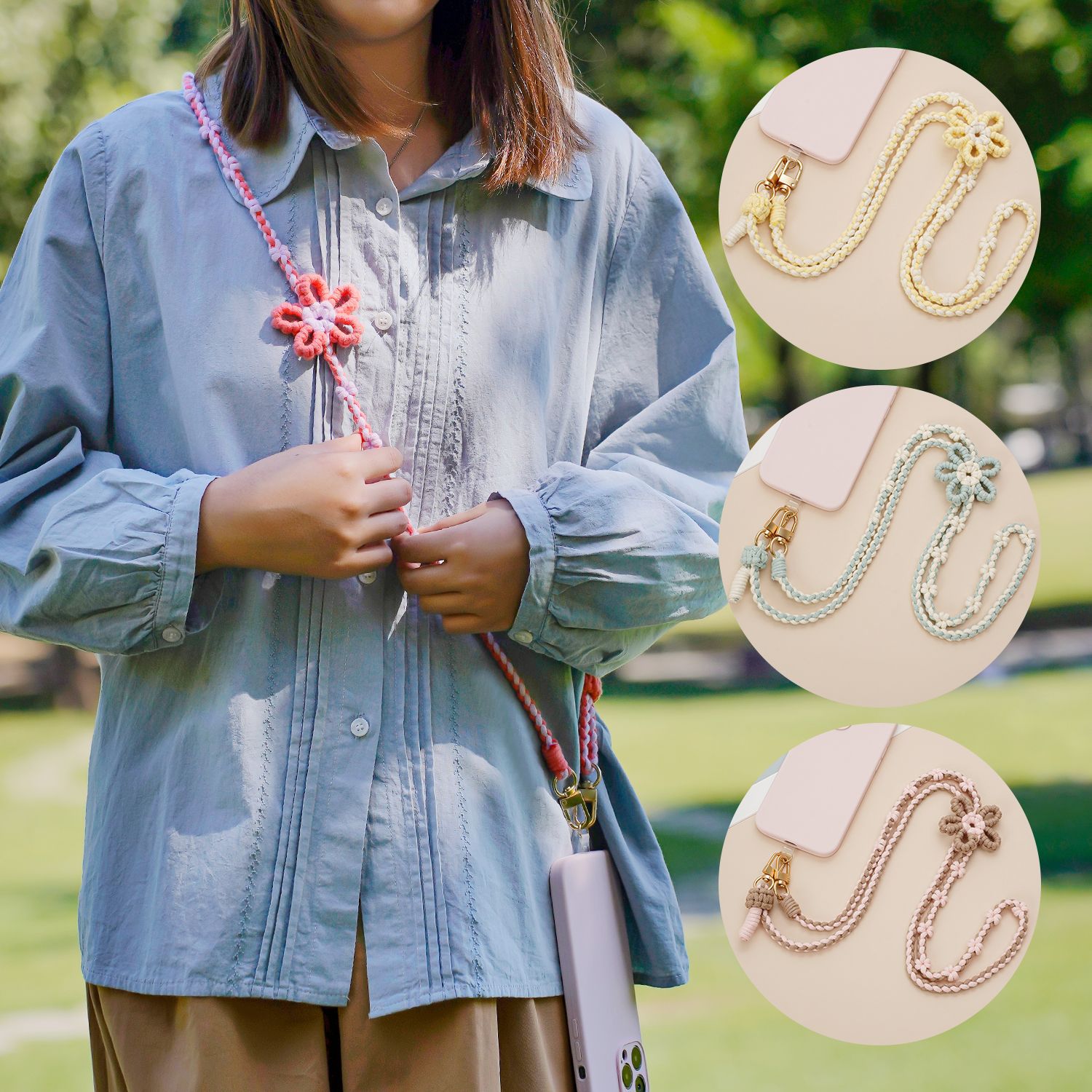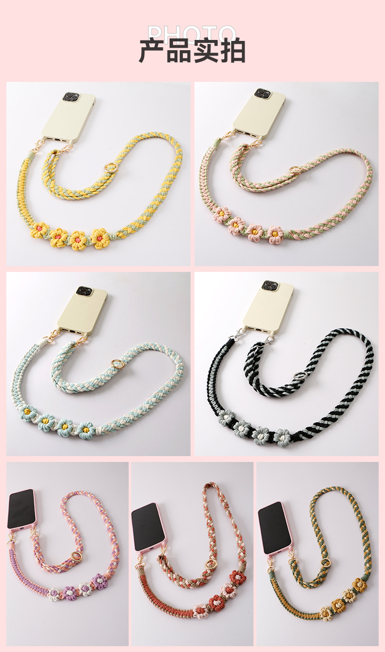 杰米波西米亚手工编织手机绳斜挎可调节斜跨花朵菊花小雏菊手机链