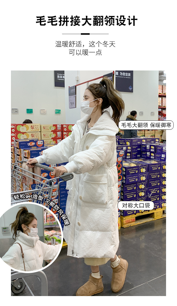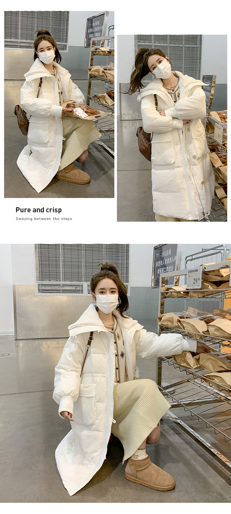 2025年冬新作 厚手ロングダウンコットンジャケット カップル男女兼用 スタンドカラー フード付き 暖かい ゆったり 外出着