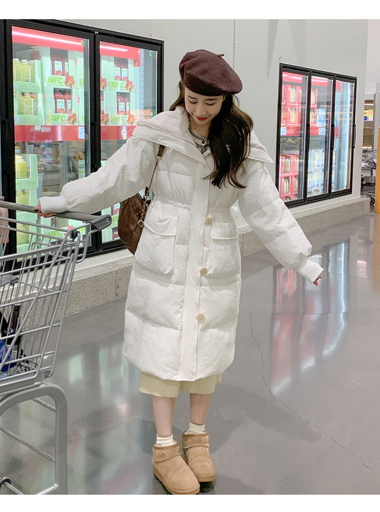 綿の服の女性の冬の中の長いタイプの韓国のファッションのデザイン感の綿の服は膝の長いタイプの大きい襟の綿入れの復古のコートを越えます。