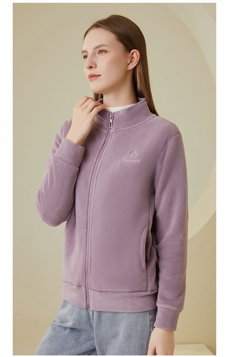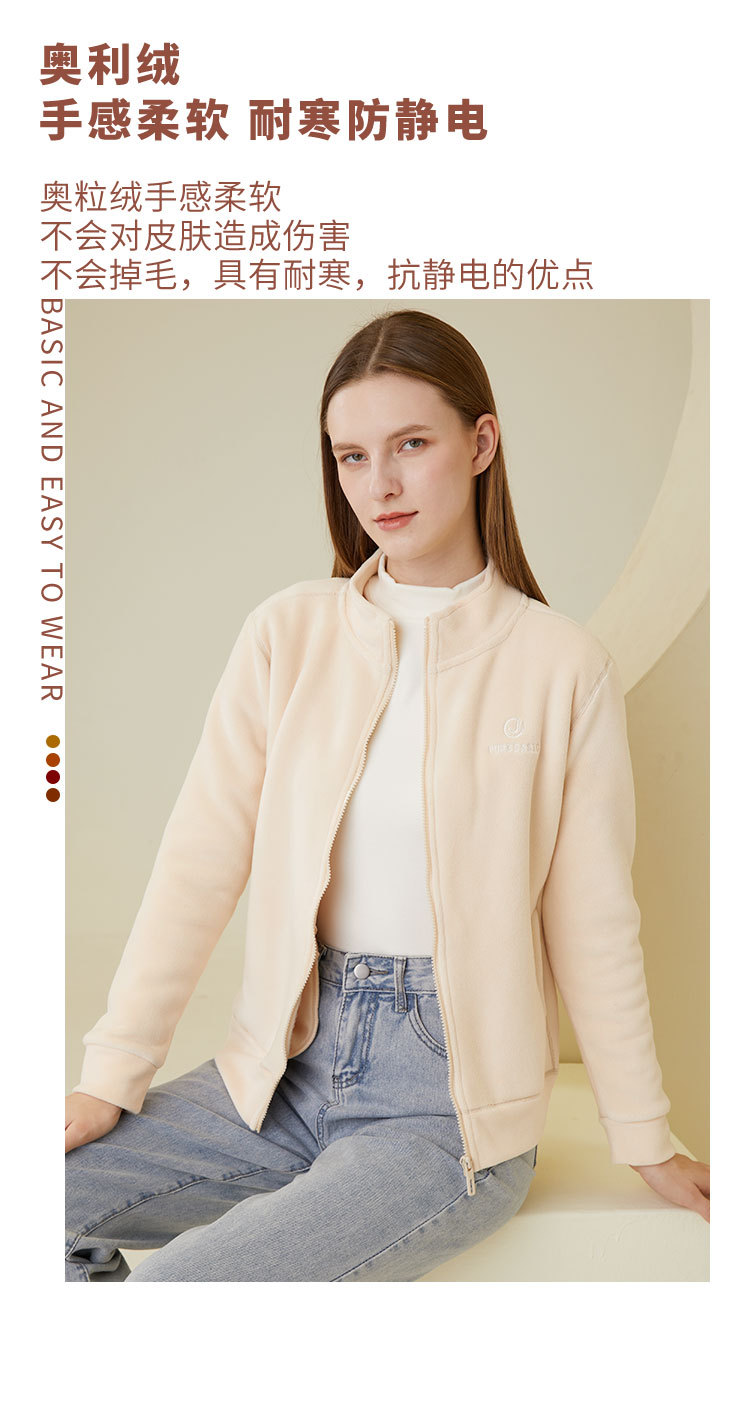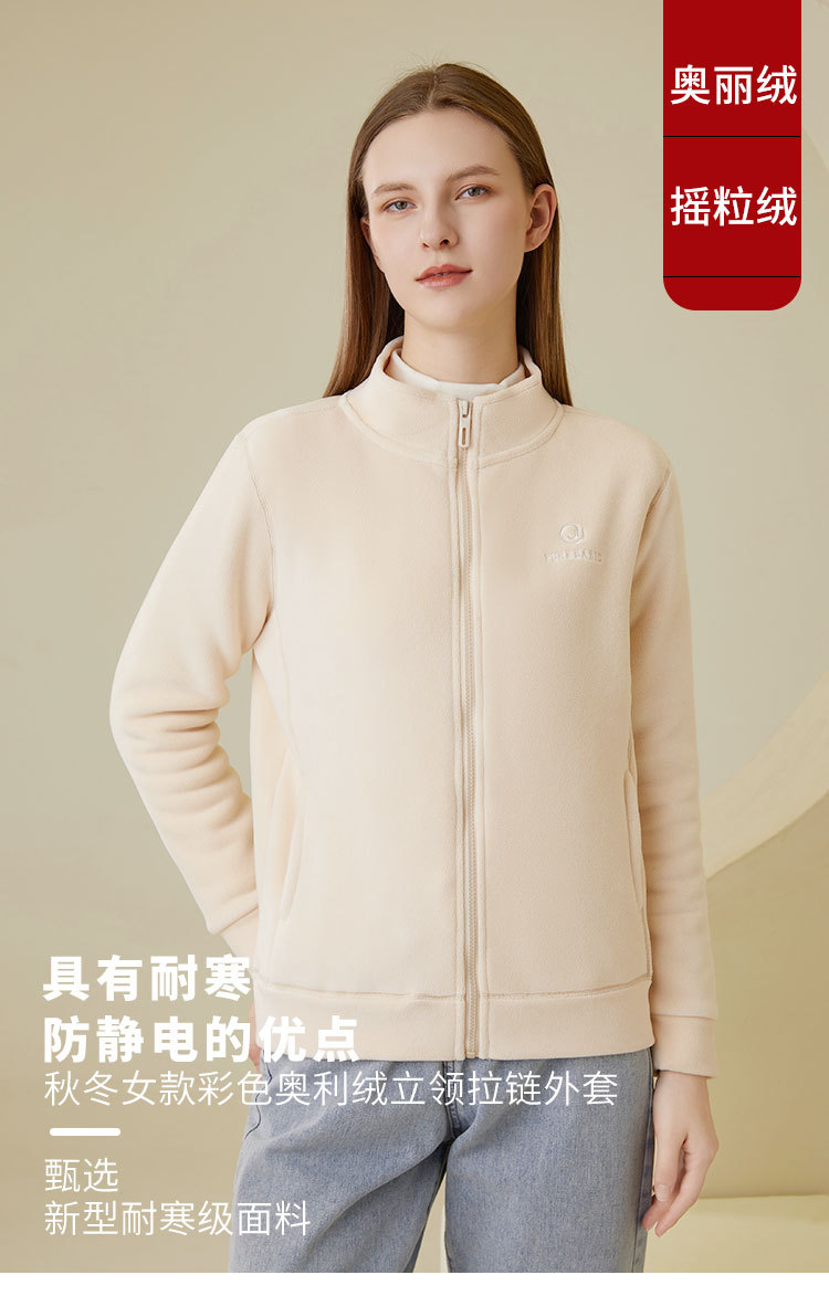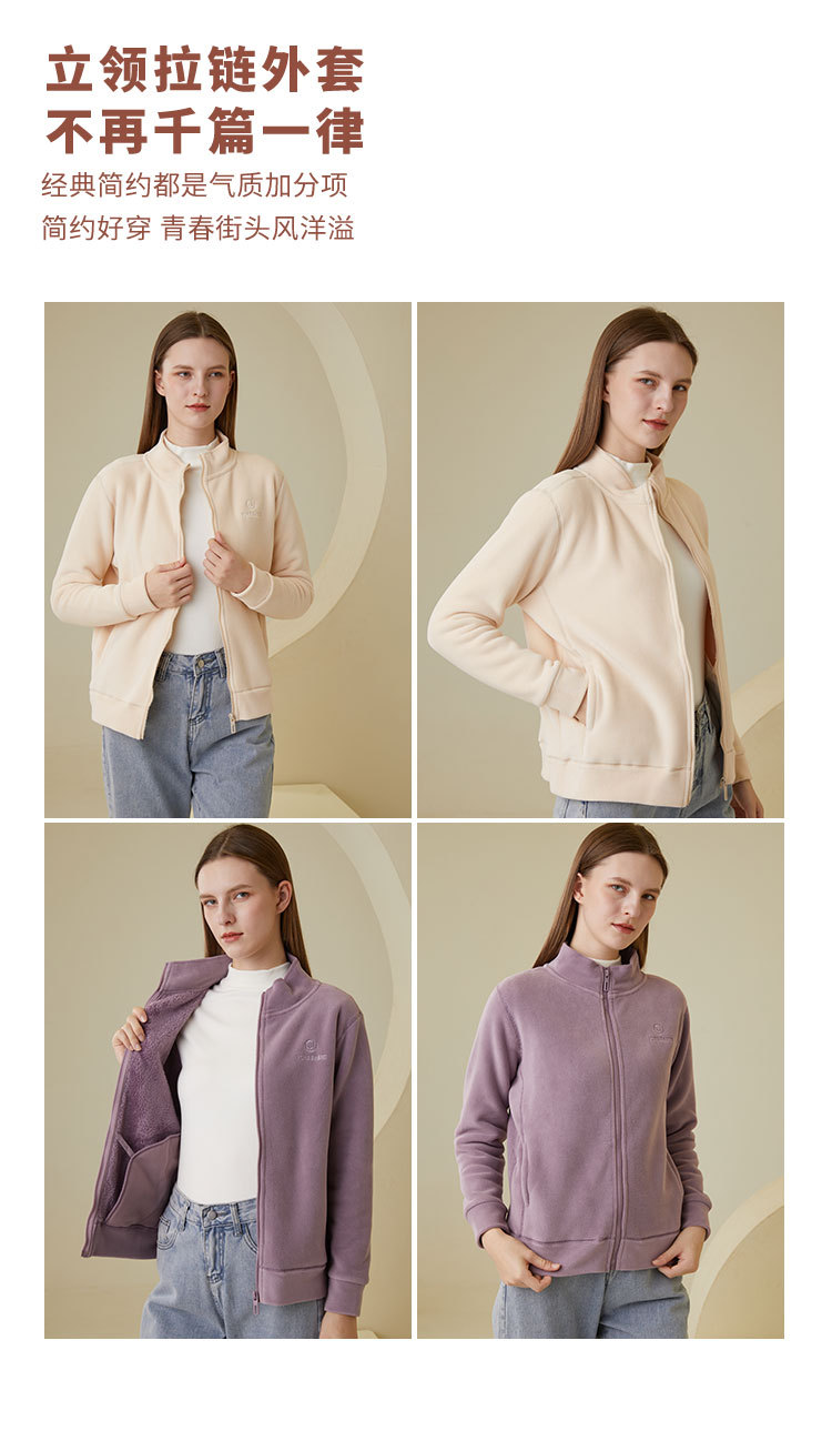 550g秋冬新款彩色加厚奥利绒拼接拉链长袖休闲百搭外套L349