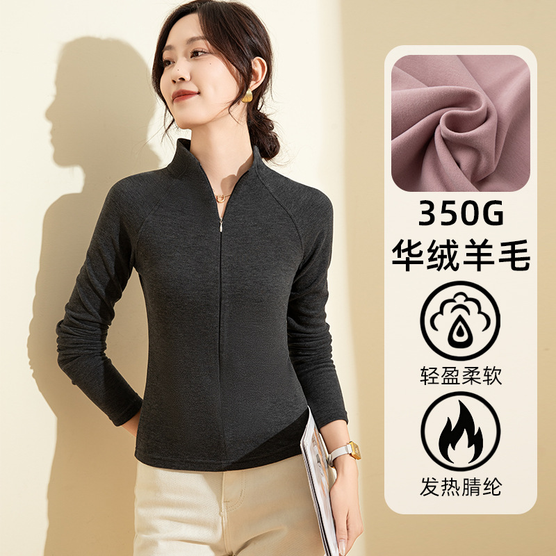 350克膨体德绒羊毛打底秋冬立领半拉链修身显瘦保暖内衣长袖L358