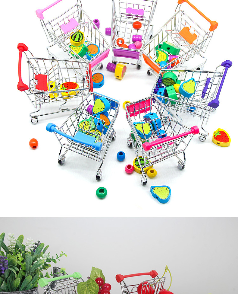 益智創意子供ミニシミュレーションスーパーマーケットのショッピングカートの小さい手押し車のままごとの模型のおもちゃは車を収納します。