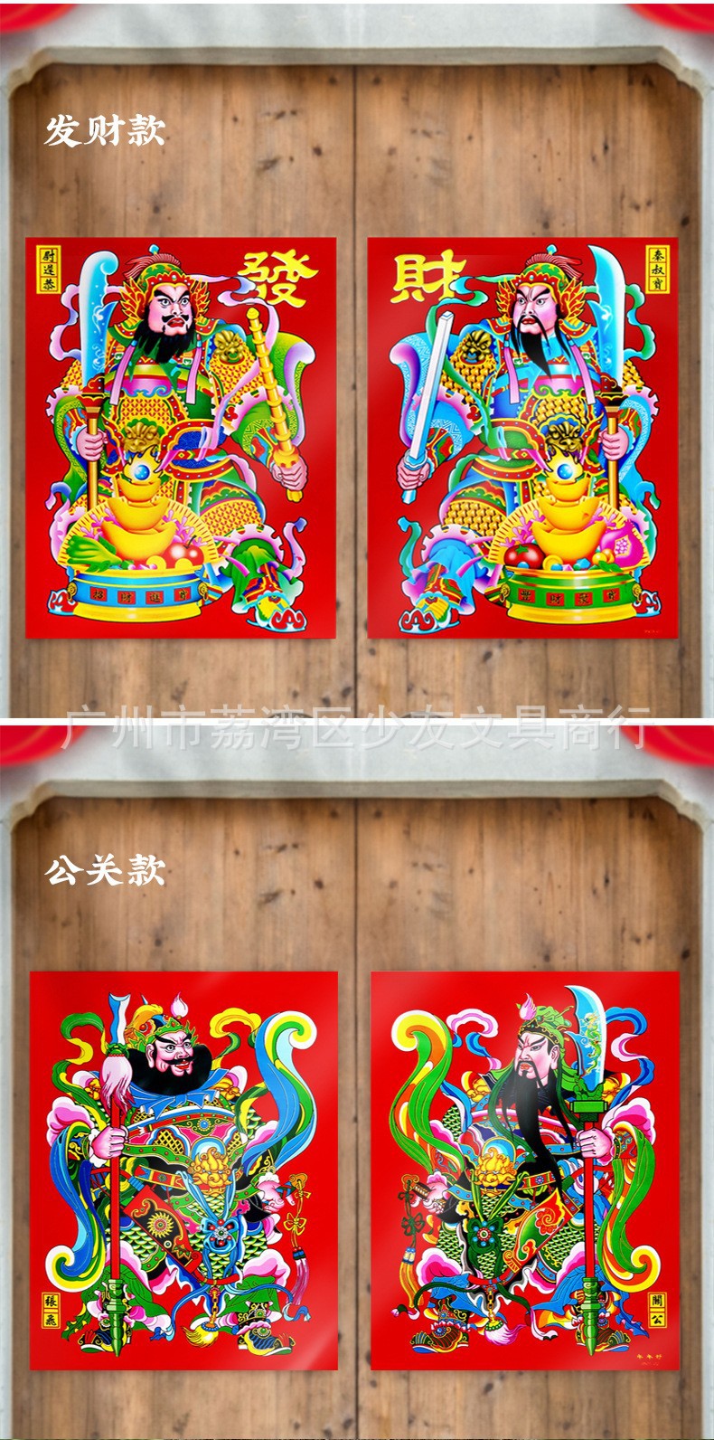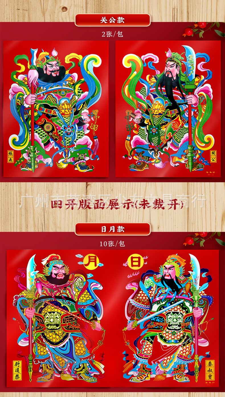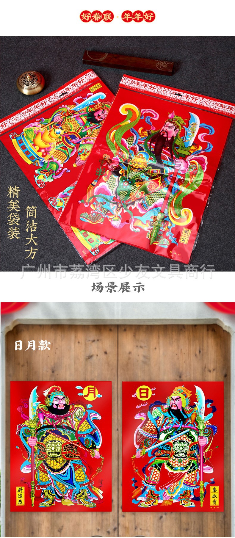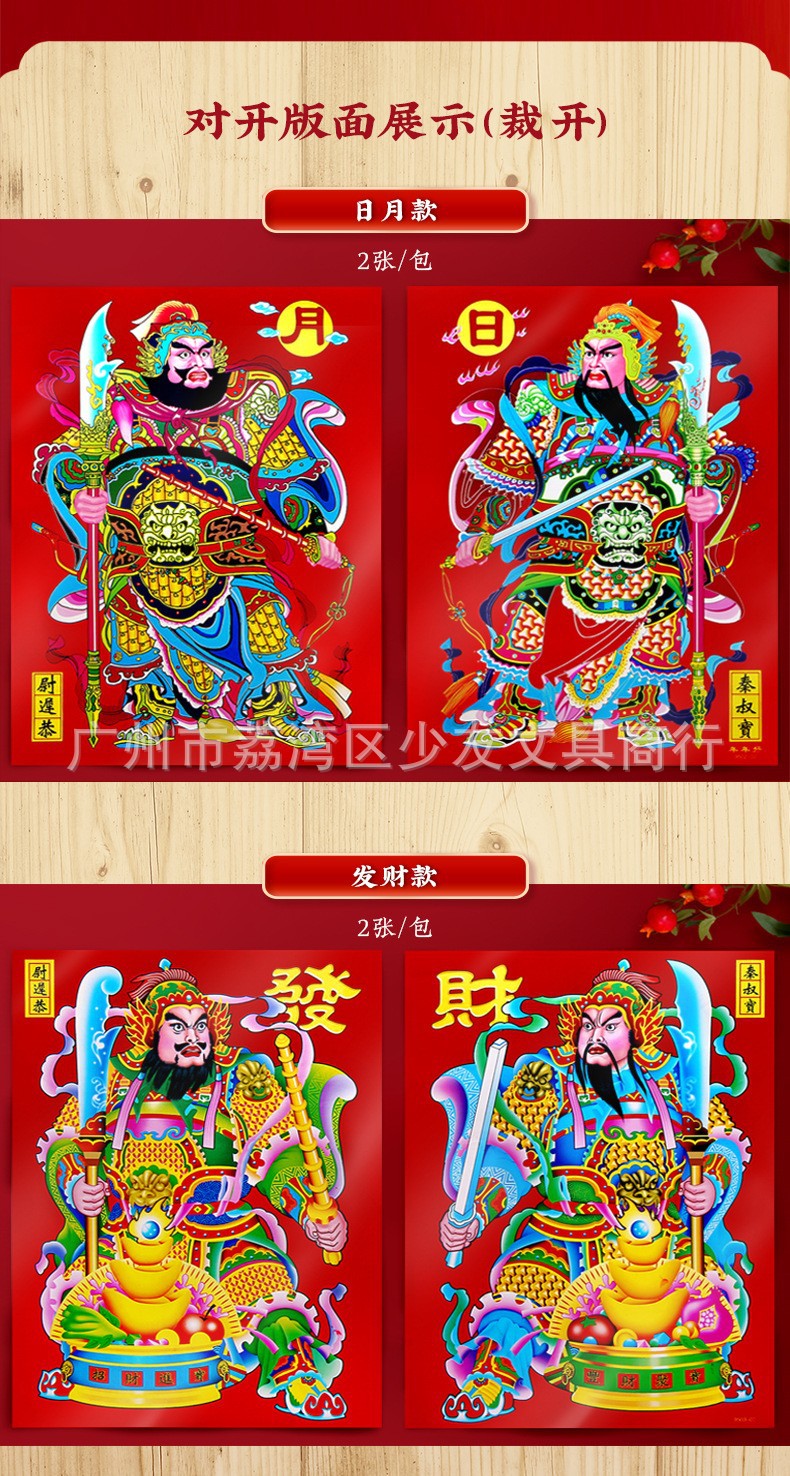 カラー 開門神-関公張飛 (全長76*50cm),門神・日月 (全長76*50cm),ドアを開けて金持ちになる (総長76*50cm)