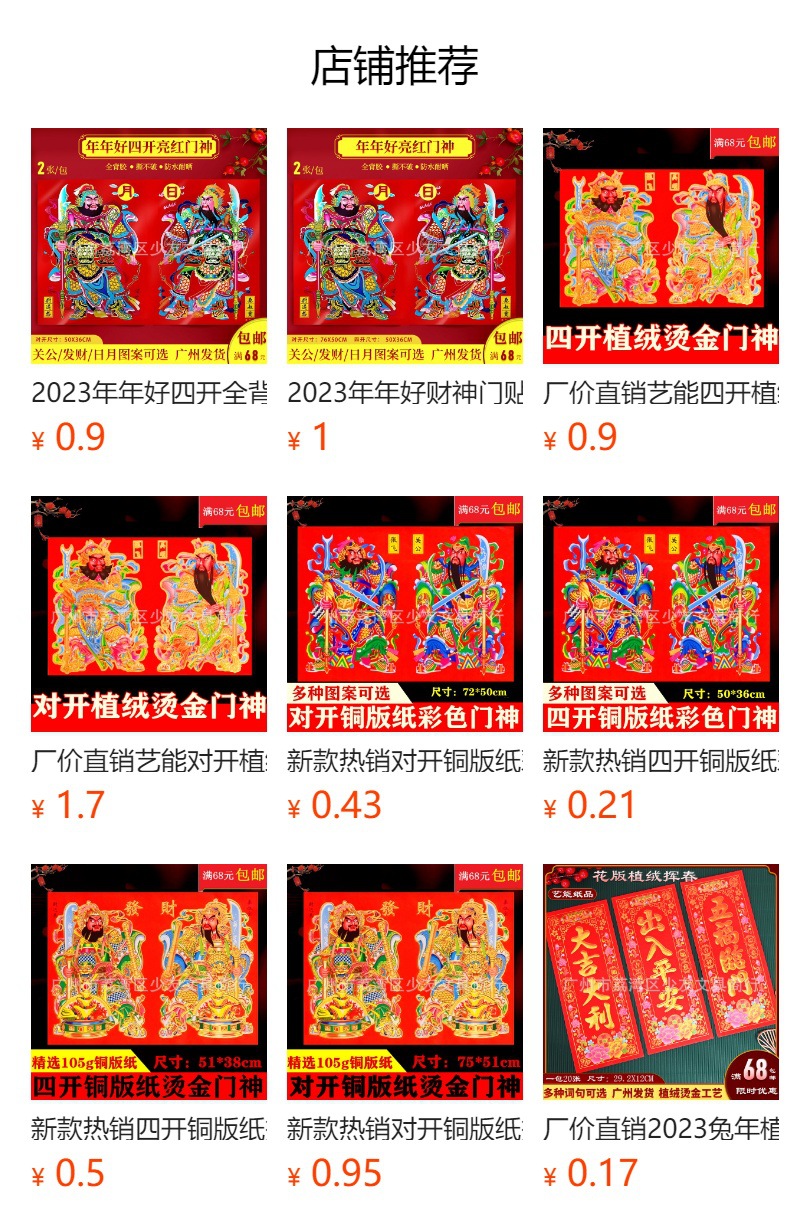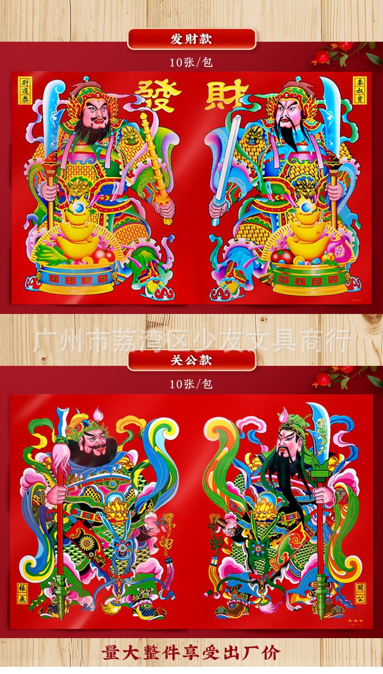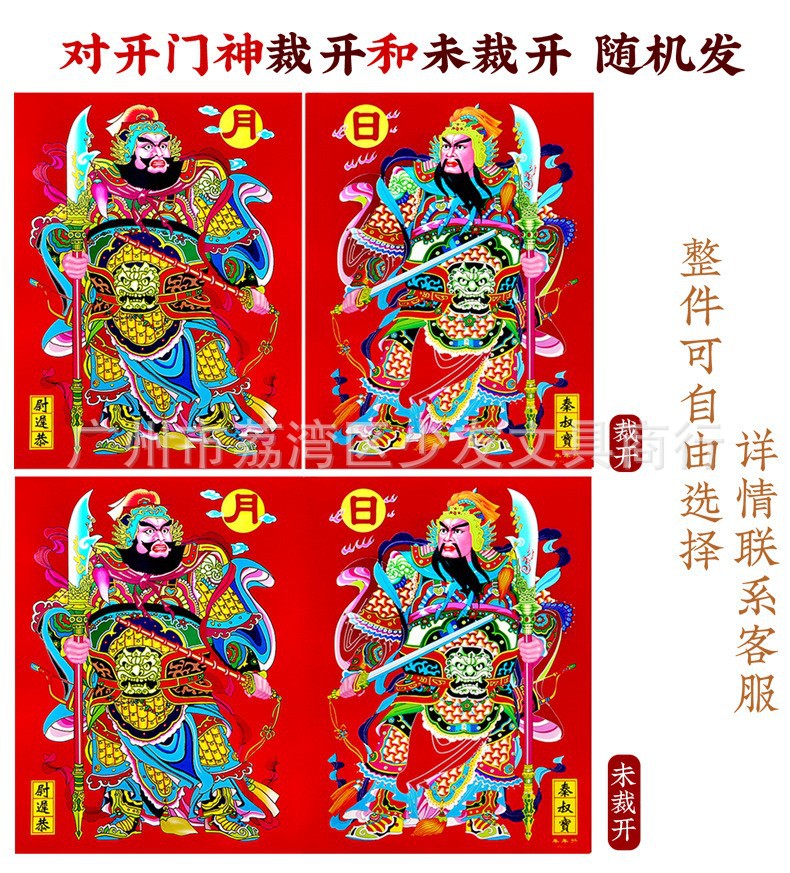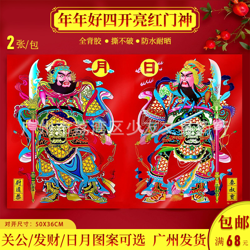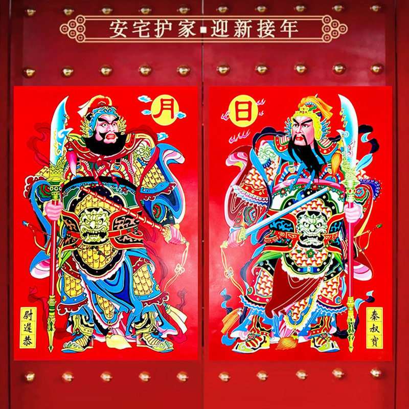 カラー 開門神-関公張飛 (全長76*50cm),門神・日月 (全長76*50cm),ドアを開けて金持ちになる (総長76*50cm)