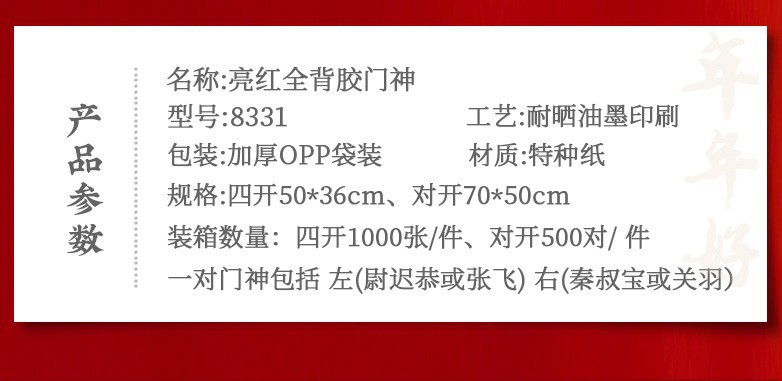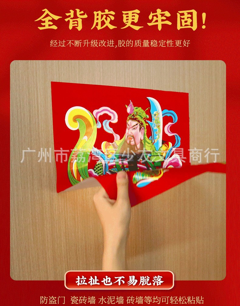 2026年馬年 四開全面粘着 剥がれない 防水 耐日光 光沢のある赤い門神 関公年画 販売用卸売