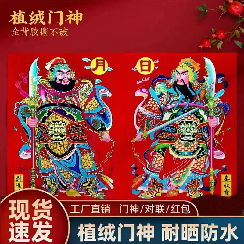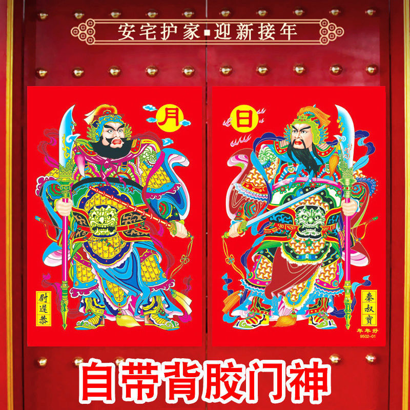 2025年招福神門飾りシール、粘着式、家の守り神、日月春聯、年画、卸売、防水、破れにくい
