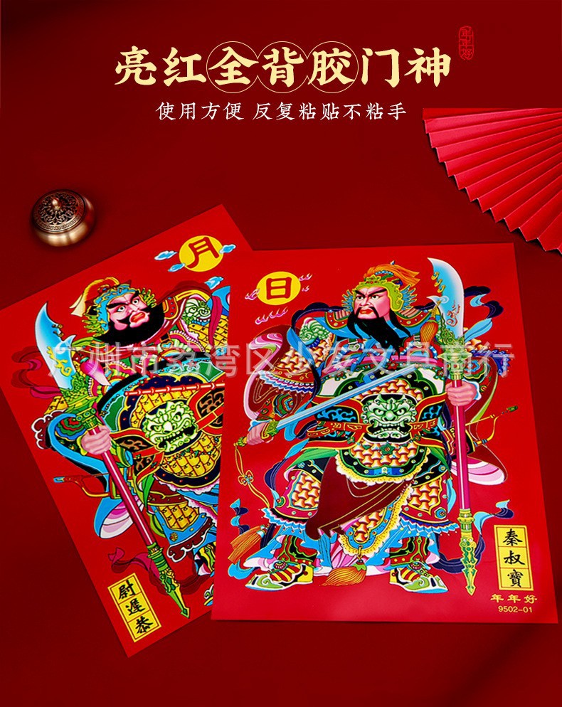 2025马年背胶自粘门神贴大门秦叔宝尉迟恭批发防水防斯撕不破春节