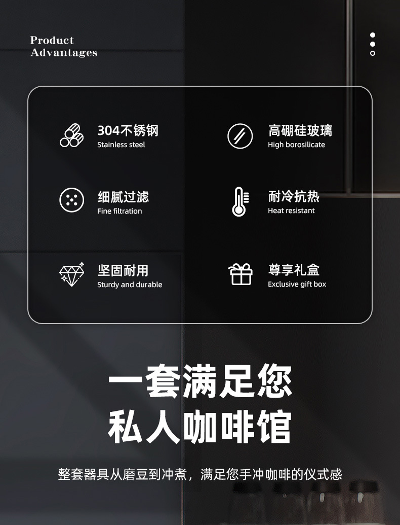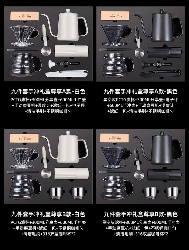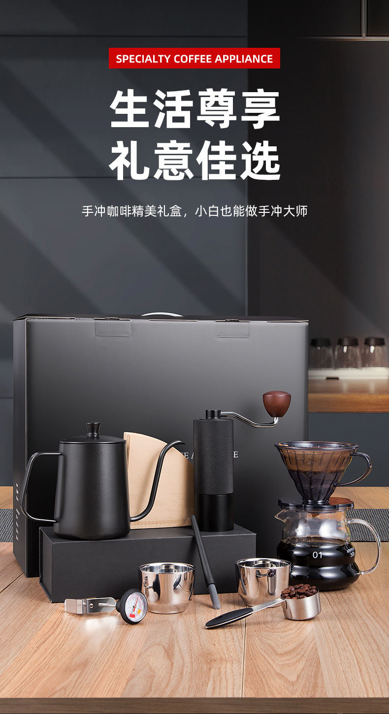 手沖コーヒーセット8点セット共有ポットコーヒーフィルターカップ手磨コーヒーマシンコーヒー研磨ギフトボックス