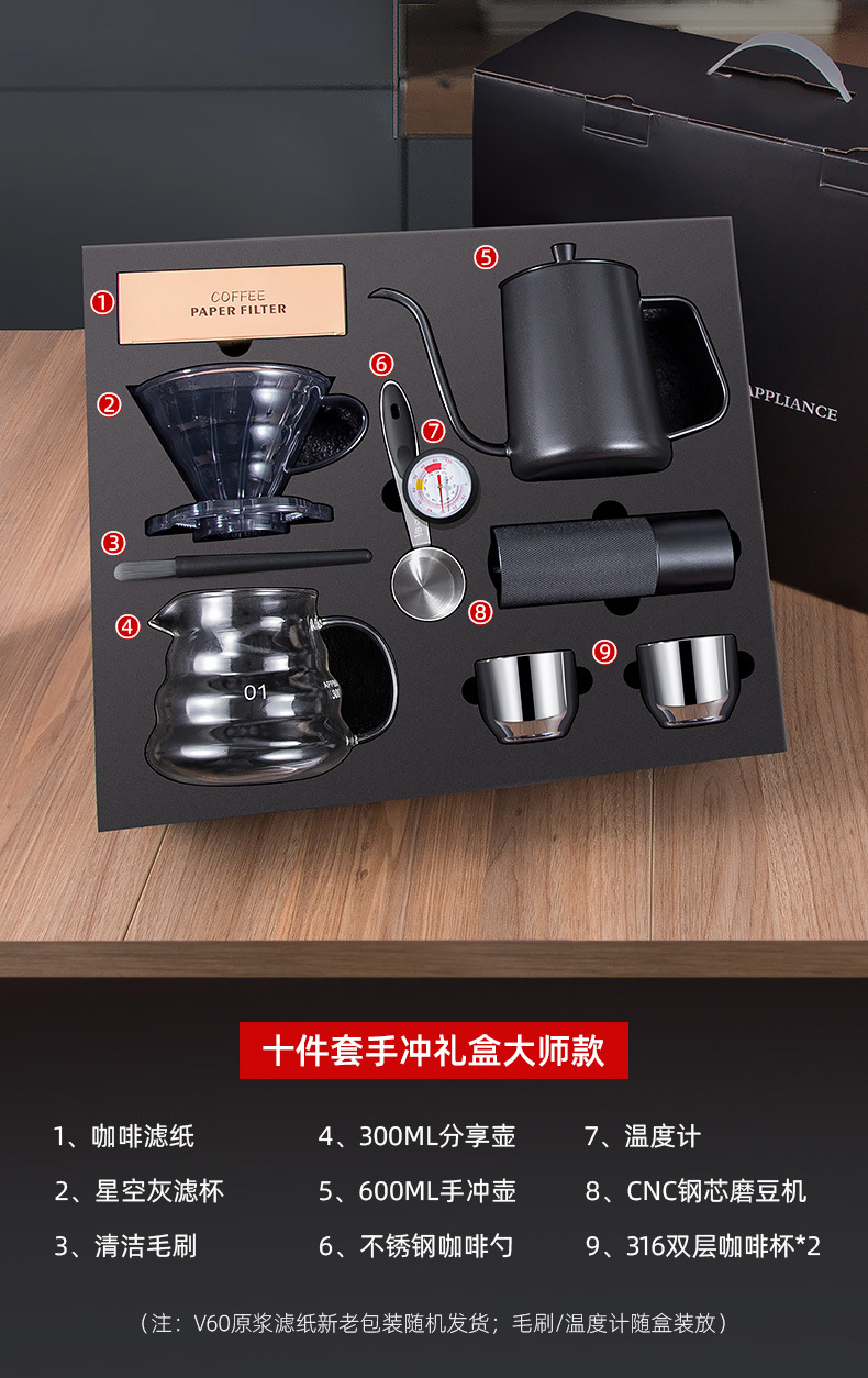 25 新しいクロスボーダーコーヒーセット肥厚ステンレス鋼 10 ピースギフトボックス手淹れポット手淹れコーヒーセット