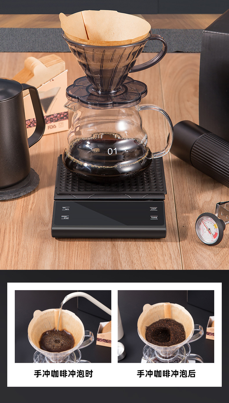 戸外手沖コーヒーセット組み合わせ手揺豆機ろ紙電子秤共有ポット組み合わせギフトボックス