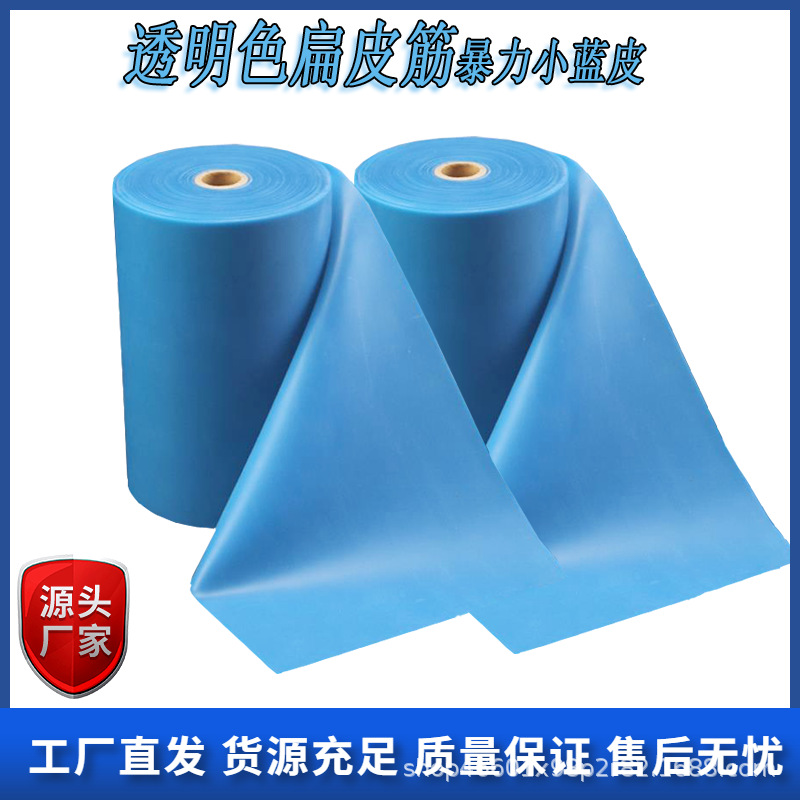 透明な青い平たい皮筋はラテックス材質の大量の現物工場に入って、高弾力性の高性能パチンコの皮筋をまっすぐに出します。