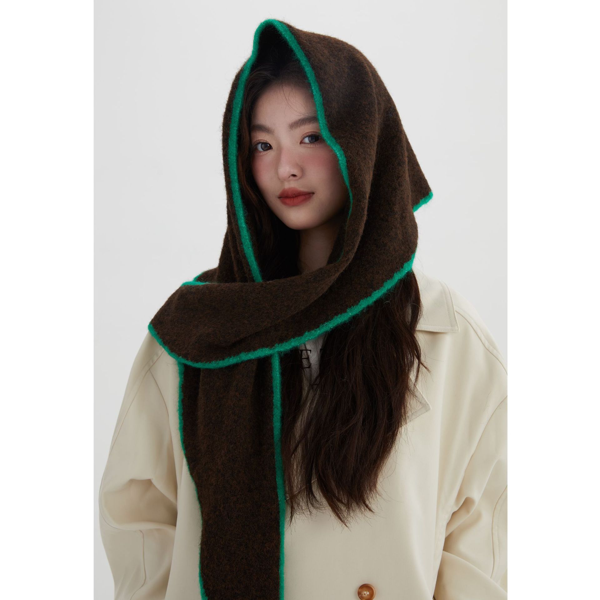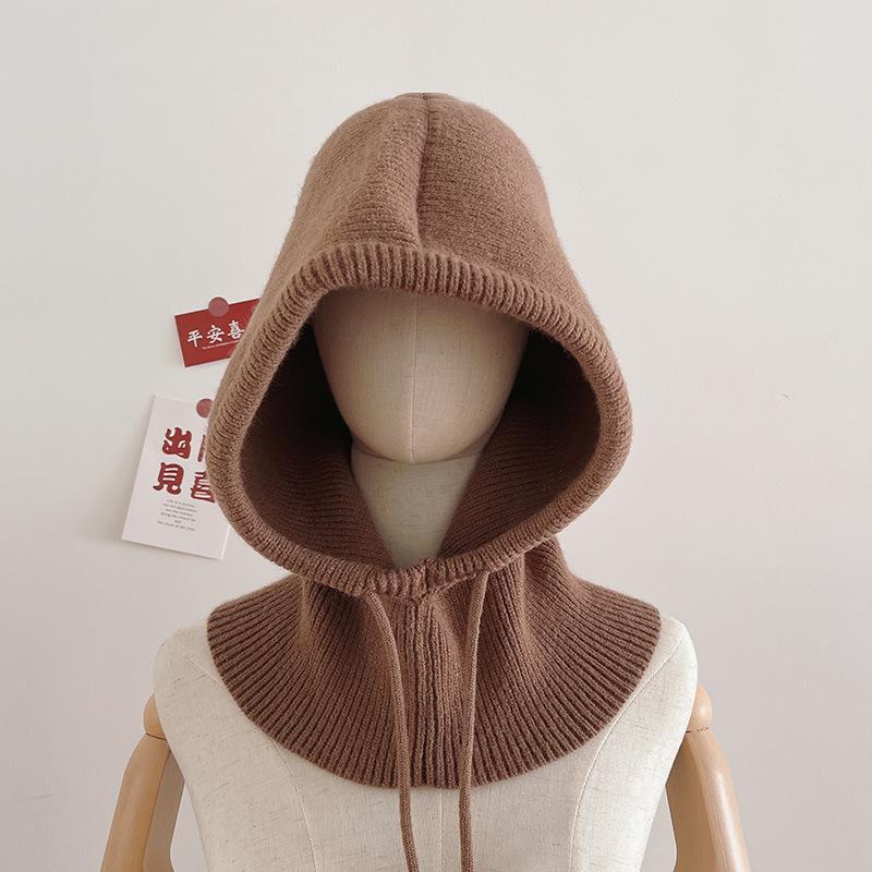 男女同款帽子围脖一体抽绳巴拉克拉法帽女冬季混纺羊绒套头针织帽