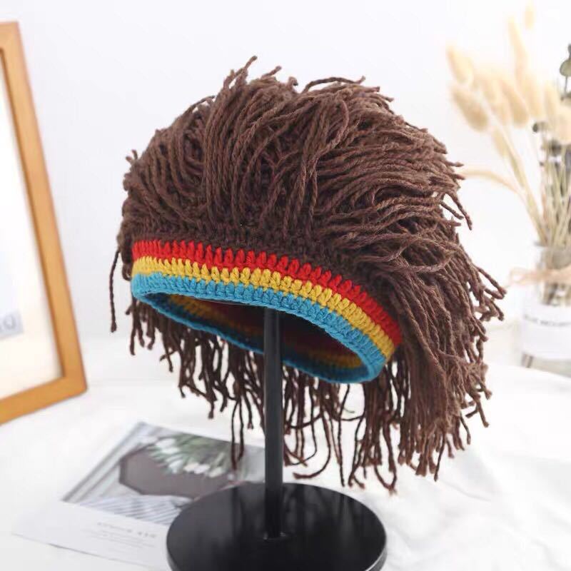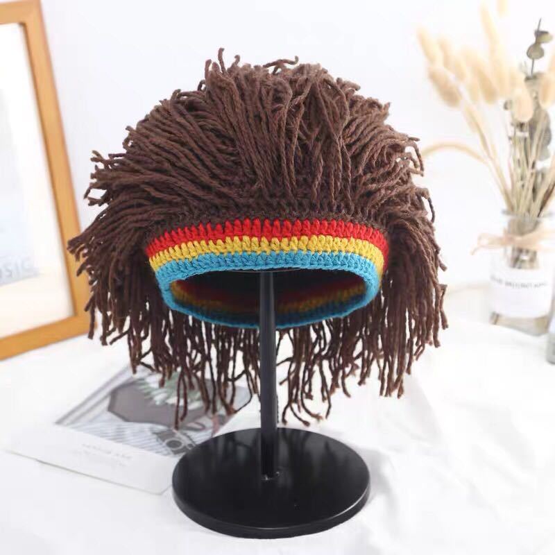 ファッションかつら毛糸帽雷鬼汚れお下げ欧米保温ニット帽子かつら帽子震え音個性変帽子潮