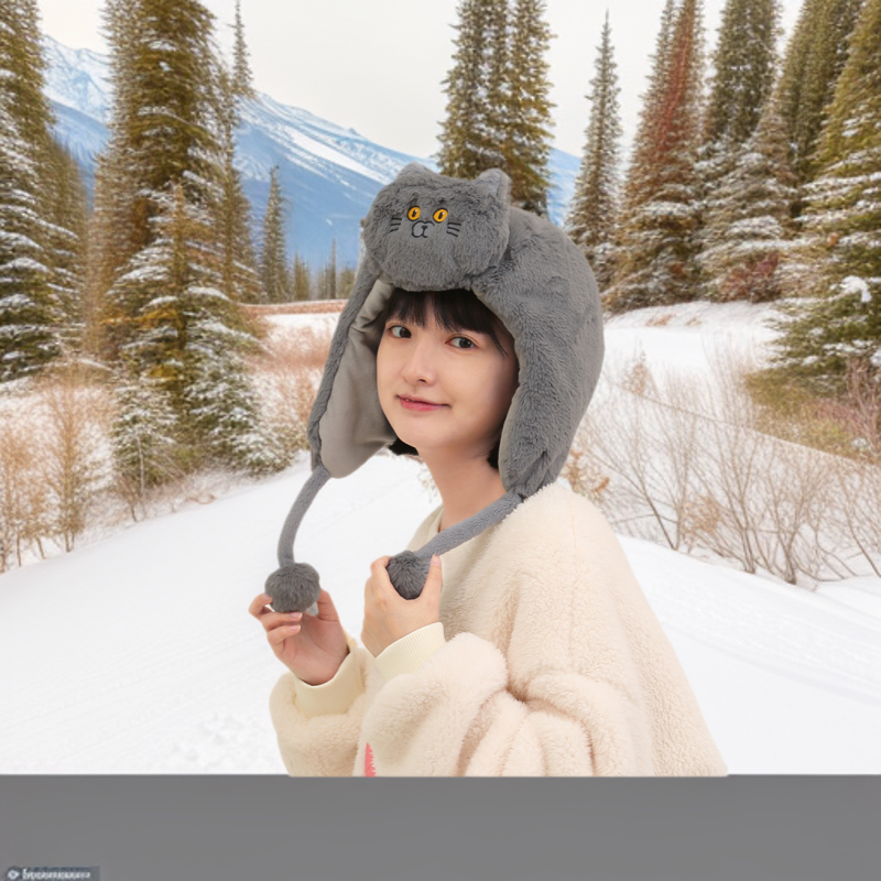 可爱抱抱猫头护耳帽秋冬保暖可爱猫咪造型毛绒套头护耳帽女生护耳