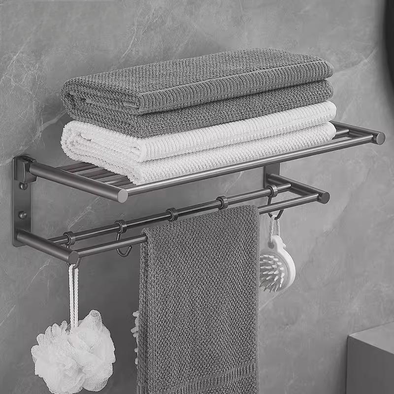 枪灰色304不锈钢毛巾架折叠浴巾架卫生间置物收纳架浴室毛巾杆架
