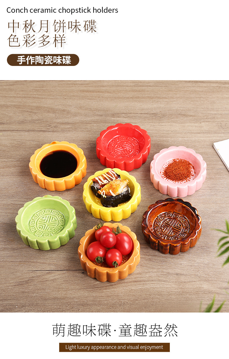 中国風陶磁器中秋月餅調味皿家庭用調味料皿家庭用ドライフルーツキャンディー皿調味料皿酢皿