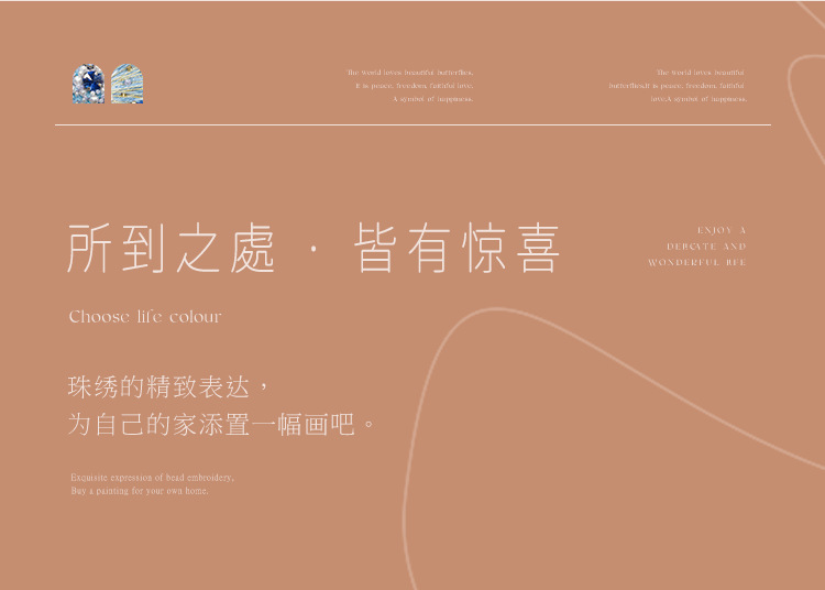 蝴蝶画系列,是我家原创的一组以蝴蝶为题材的具有法式刺绣风格的珠绣系列作品。一经推出,就广受用户欢迎。目前已经有蓝蝴蝶、粉蝴蝶、绿蝴蝶3款特色产品。