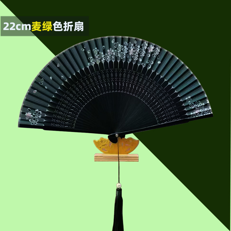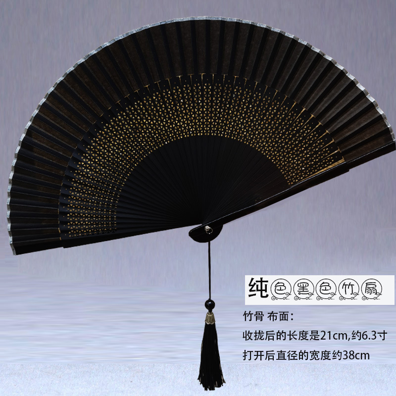 焼き漆全黒色扇子扇風機中国風女性式古風古典舞踊扇風機工芸扇アマゾン爆型扇風機