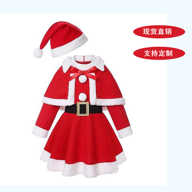 圣诞老人服装红色长袖连衣裙带披肩帽腰带圣诞装扮派对服新款圣诞