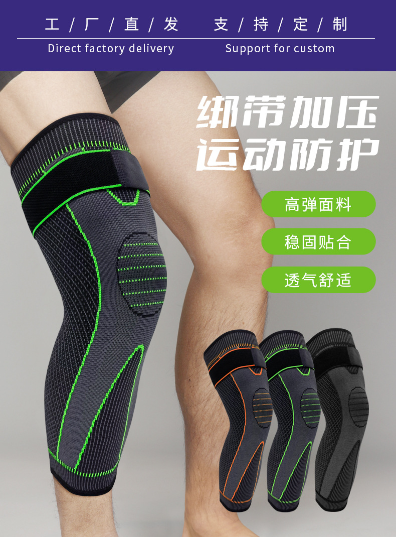 クロスボーダー長筒圧縮運動膝保護新型ナイロン弾性ニット保温保護具騎乗フィットネスランニング