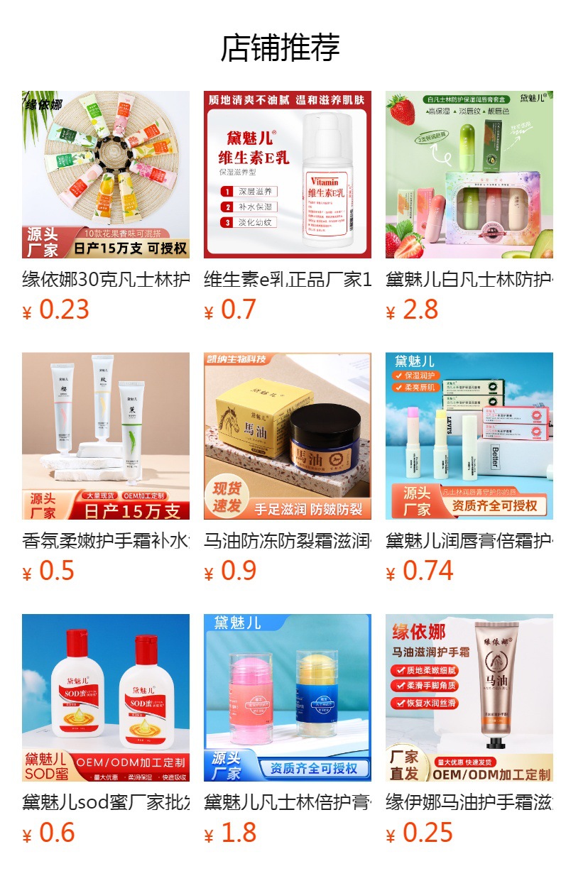 源依娜馬油ハンドクリームメーカー卸売ワセリン生放送福利品小容量高保湿