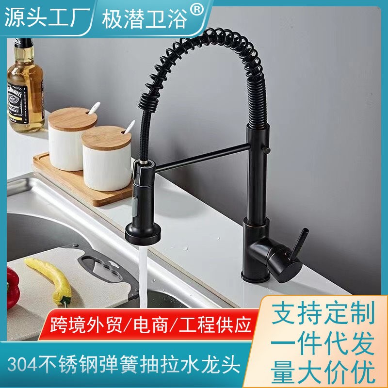 304ステンレス引き出し式厨房冷熱水槽野菜鉢蛇口多機能伸縮回転スプリング蛇口