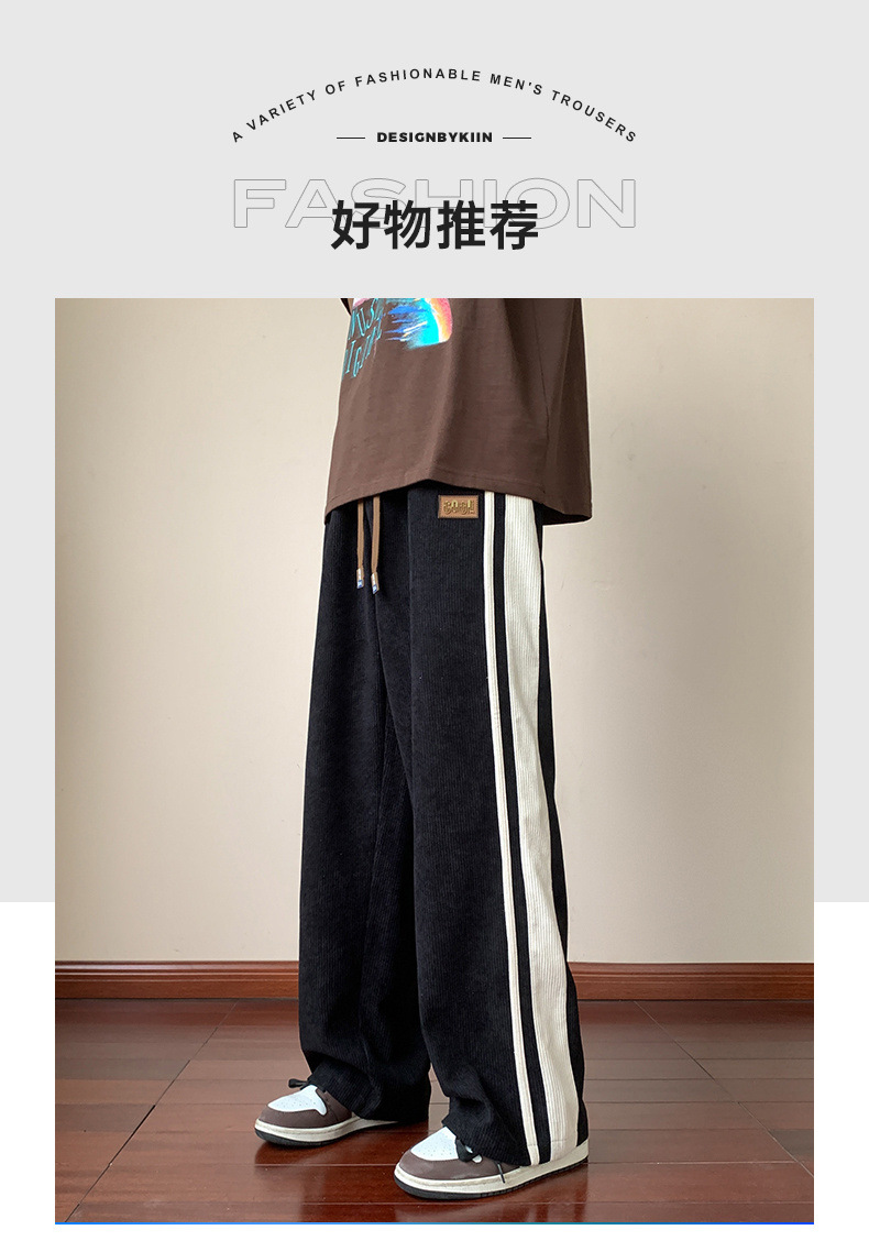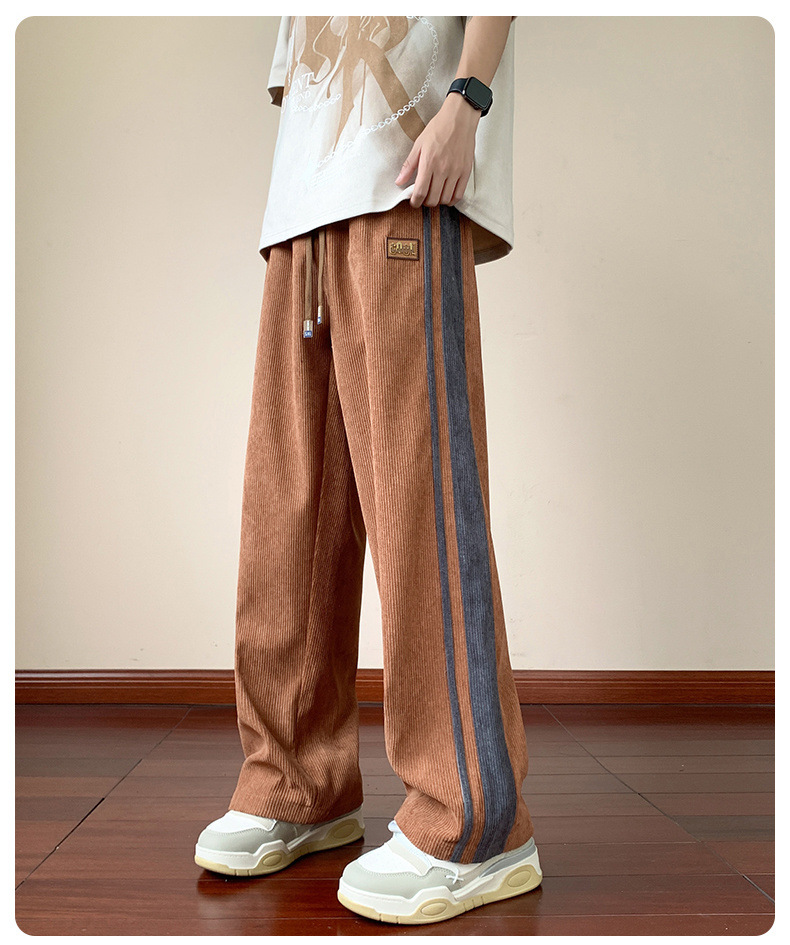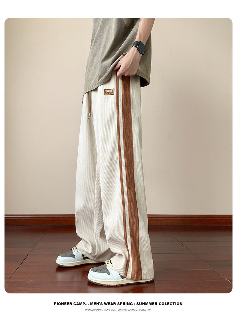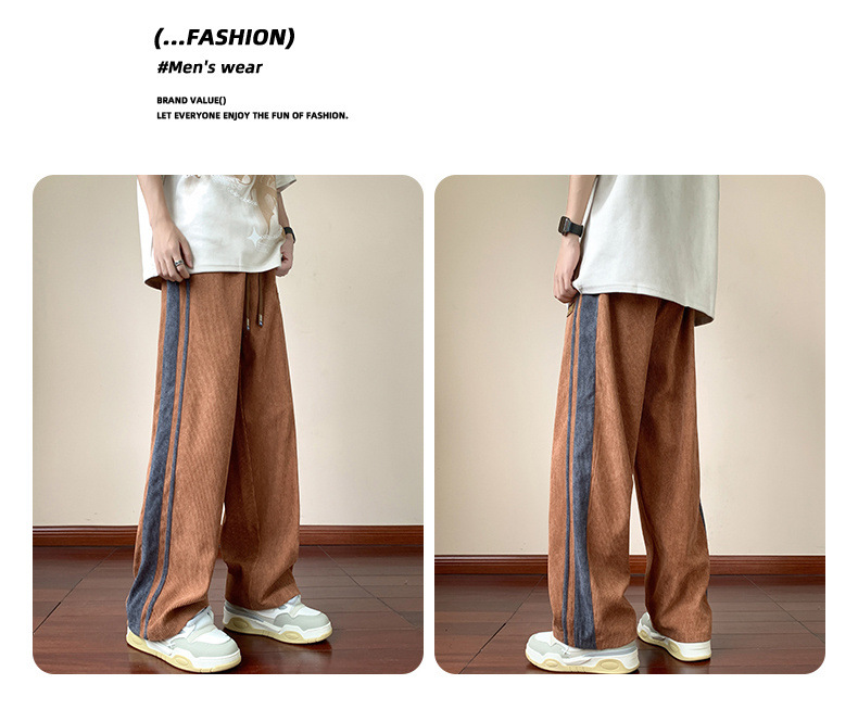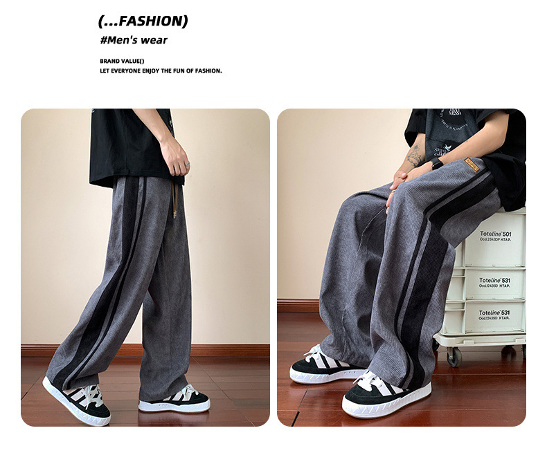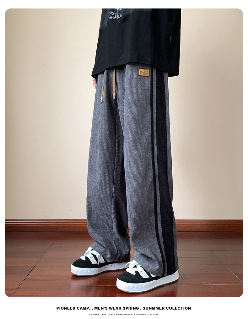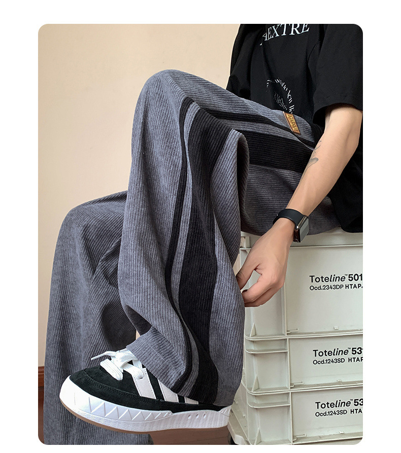 2023春秋のゆったりとしたカジュアルパンツの男性九分のズボンの縁のコーデュロイのまっすぐな筒の衛のズボンの青少年の百合のズボン
