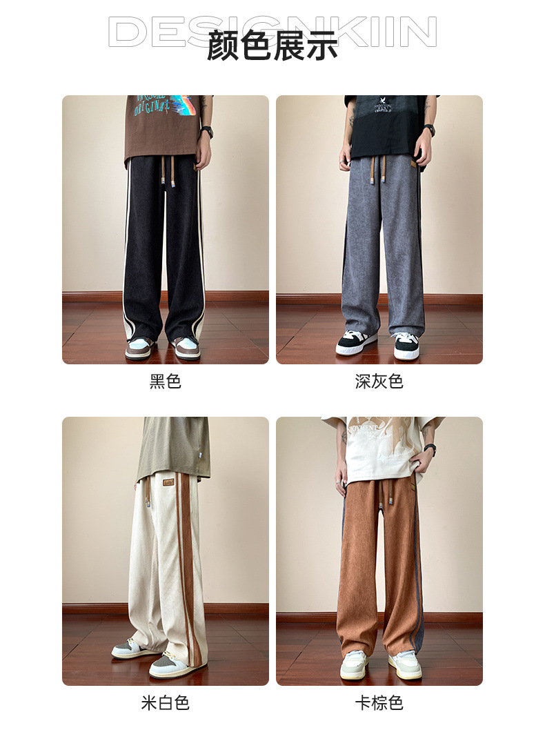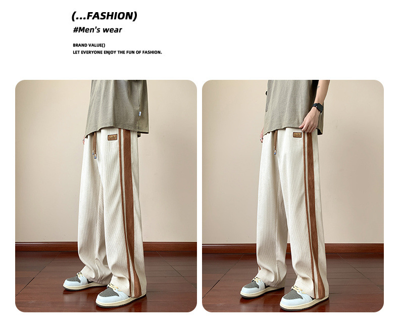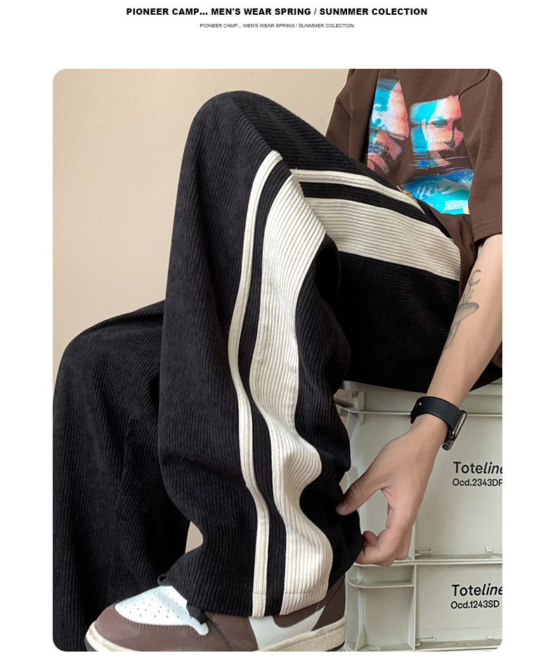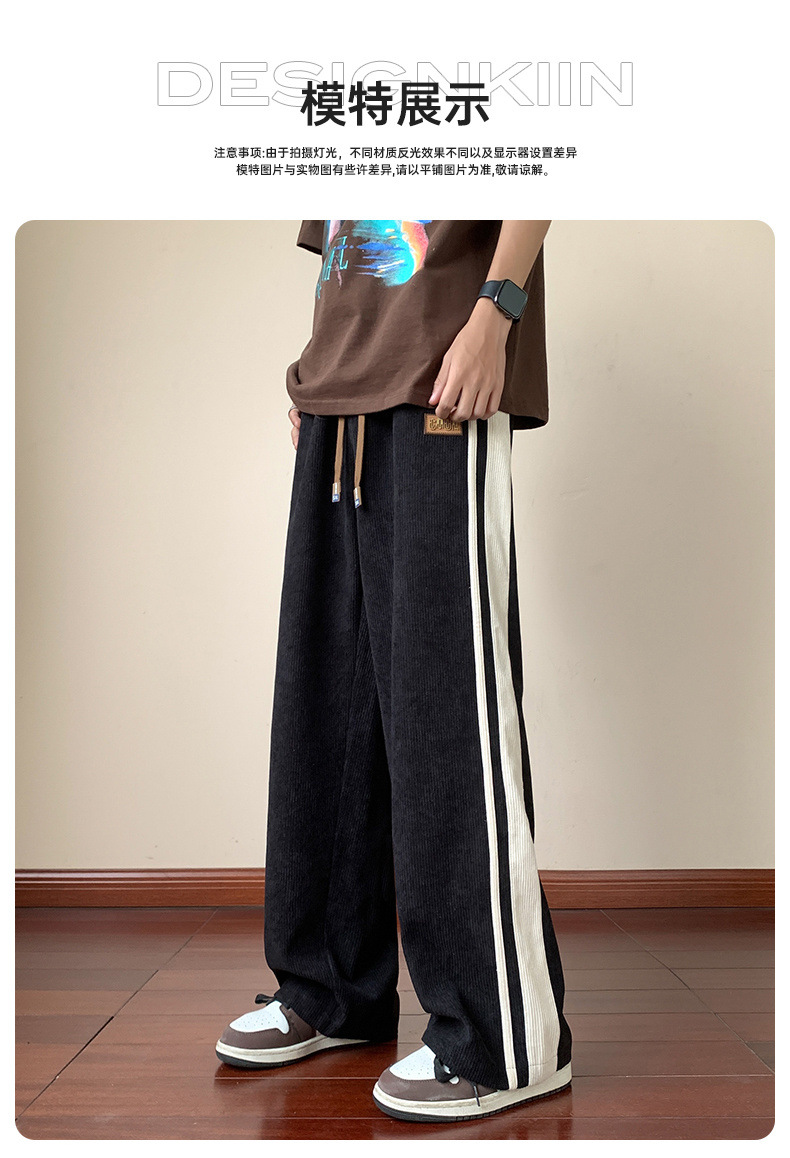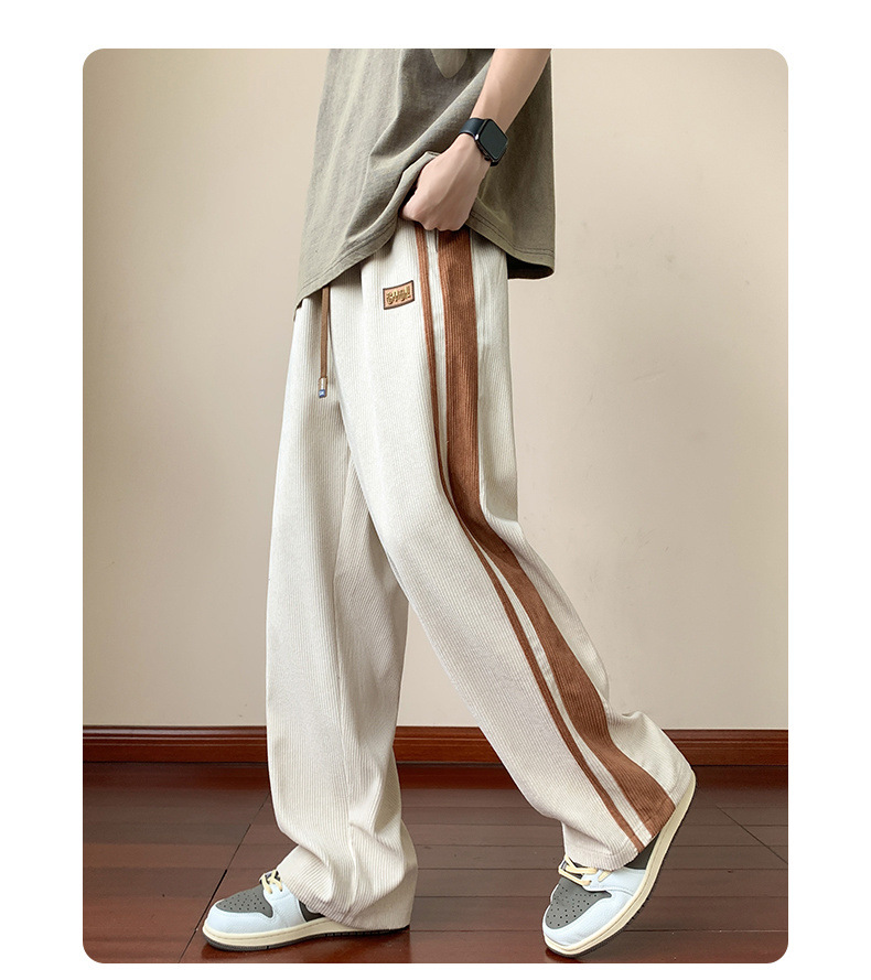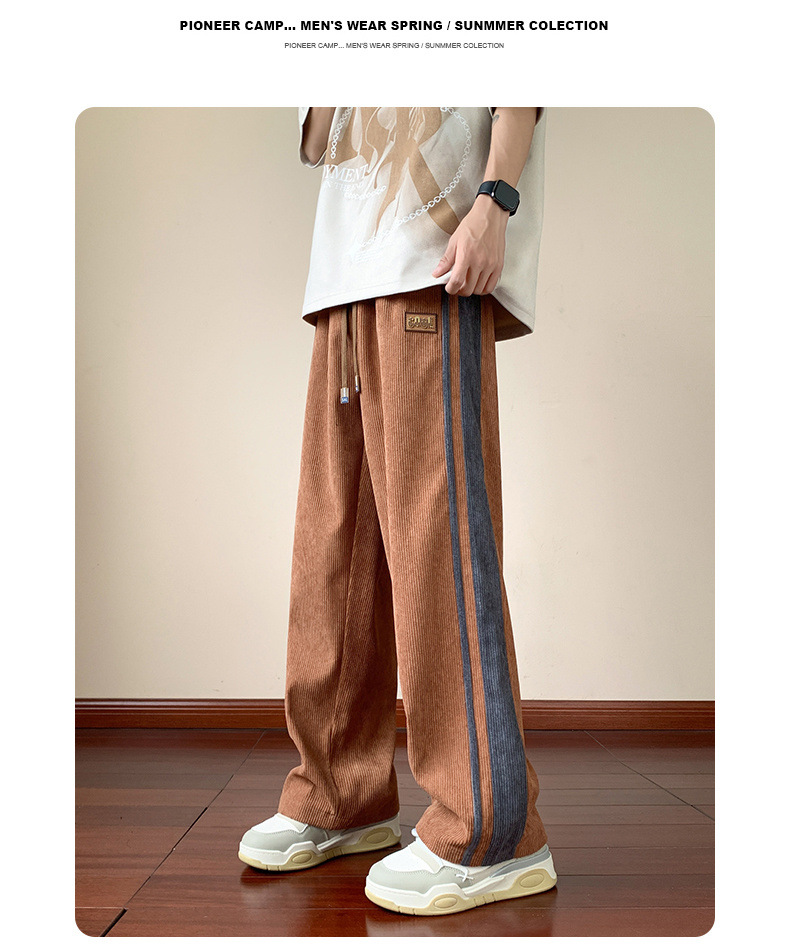 2023春秋のゆったりとしたカジュアルパンツの男性九分のズボンの縁のコーデュロイのまっすぐな筒の衛のズボンの青少年の百合のズボン