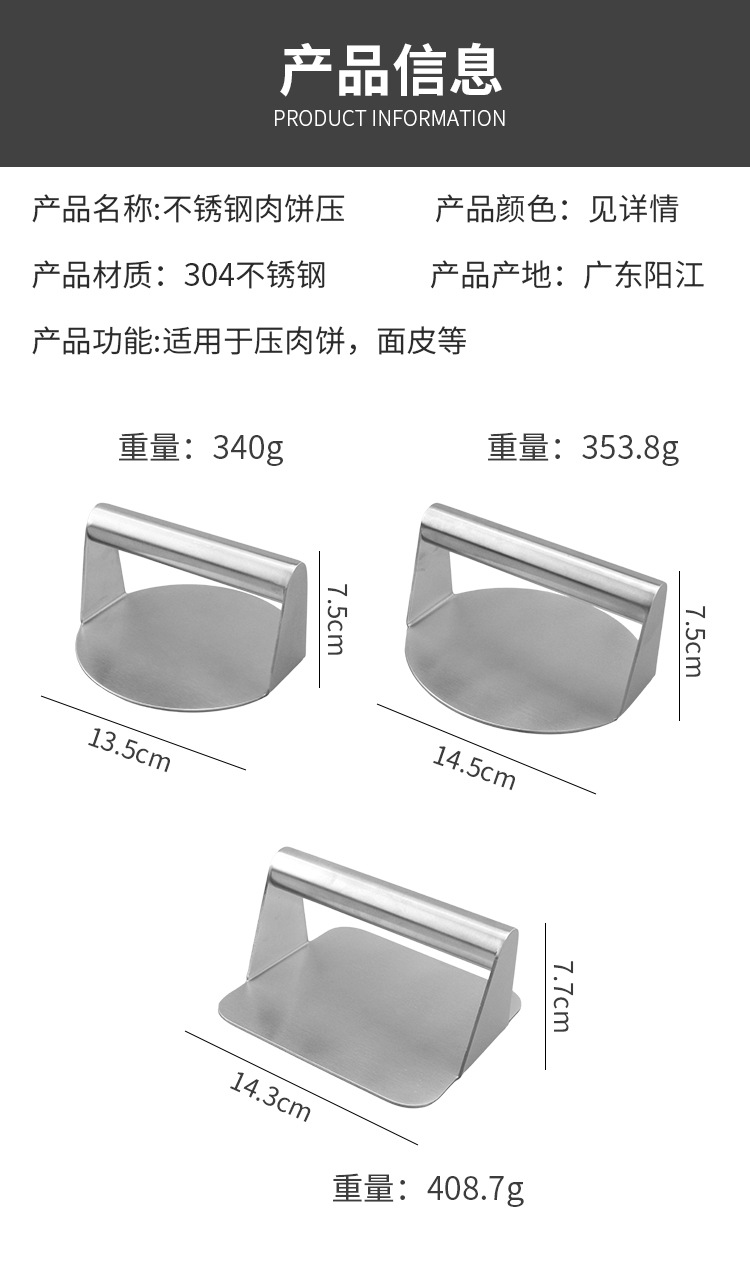 304ステンレス角型肉押し器手動肉押し器円形ハンバーガー肉押し器肉押し器