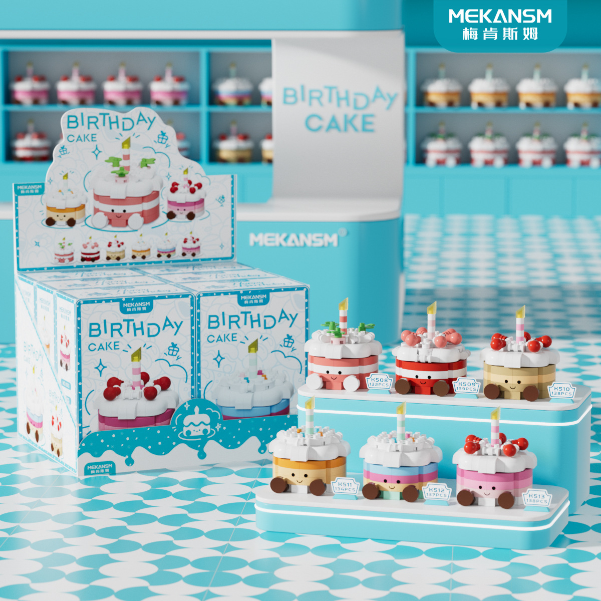 新款梅肯斯姆蛋糕美食微小颗粒积木拼装风巧克力蛋糕可爱桌面摆件