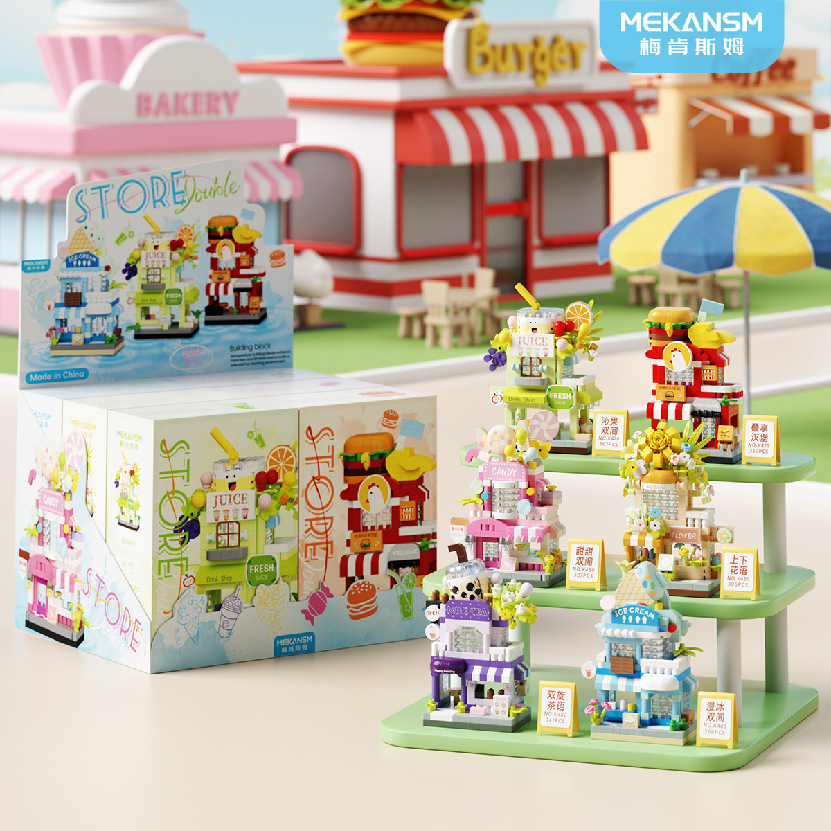 梅肯ins风双层街景益智微颗粒积木拼装创意儿童生日礼物桌面摆件