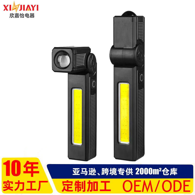 国境を越えた新型多機能自動車修理作業灯、回転ヘッドLED懐中電灯、COB長寿命充電式点検灯