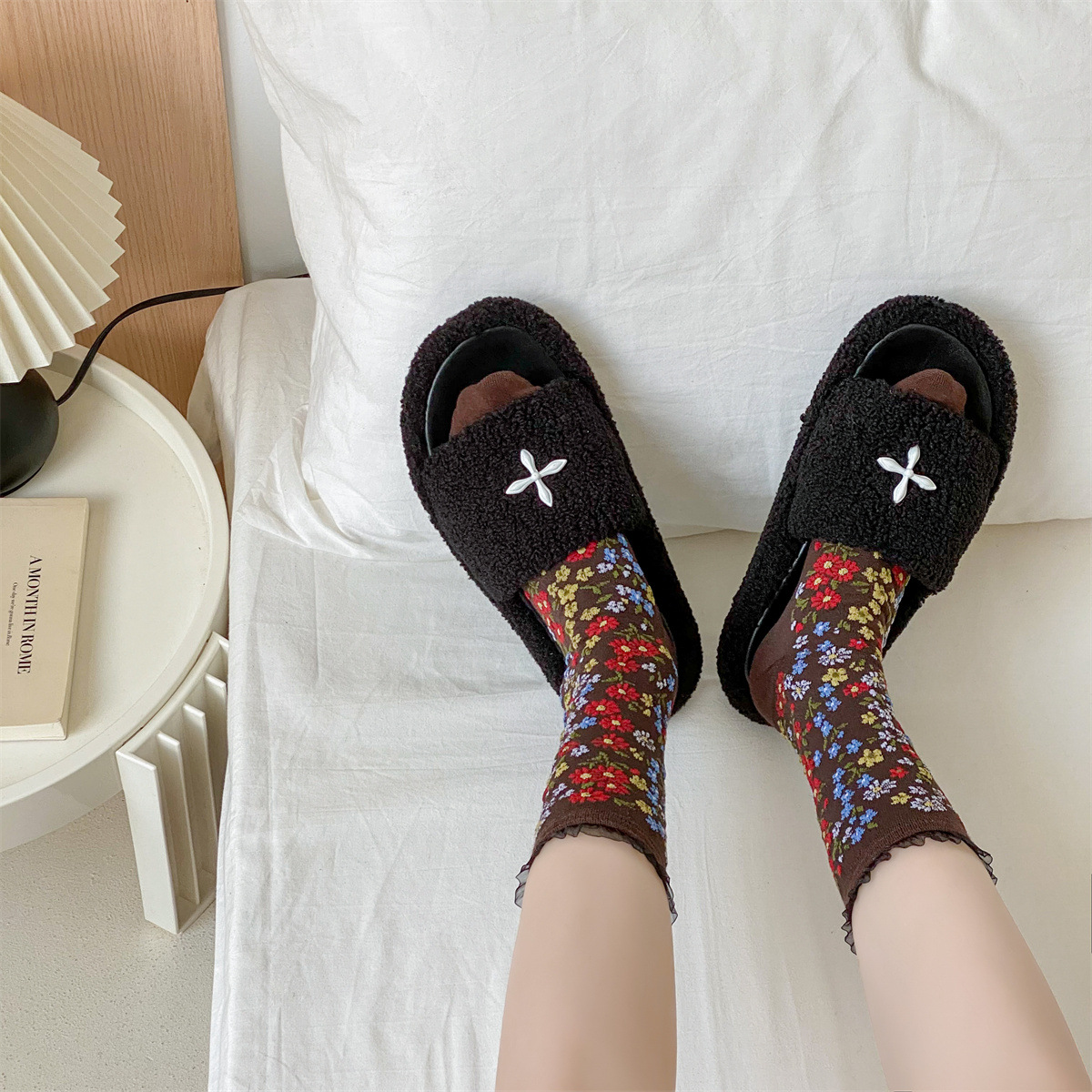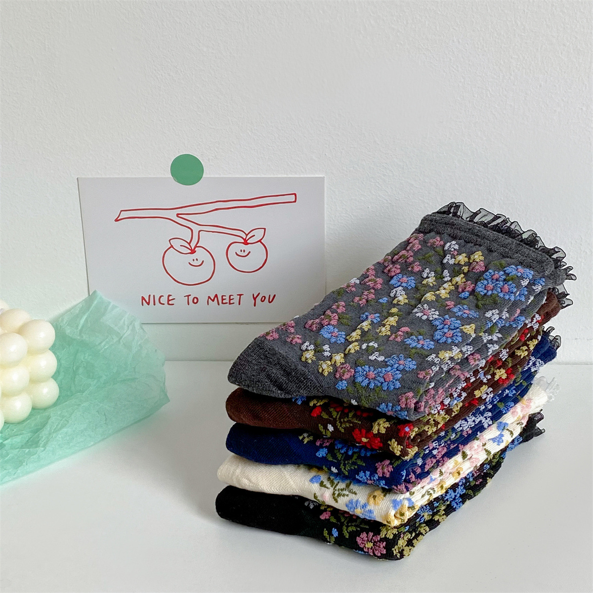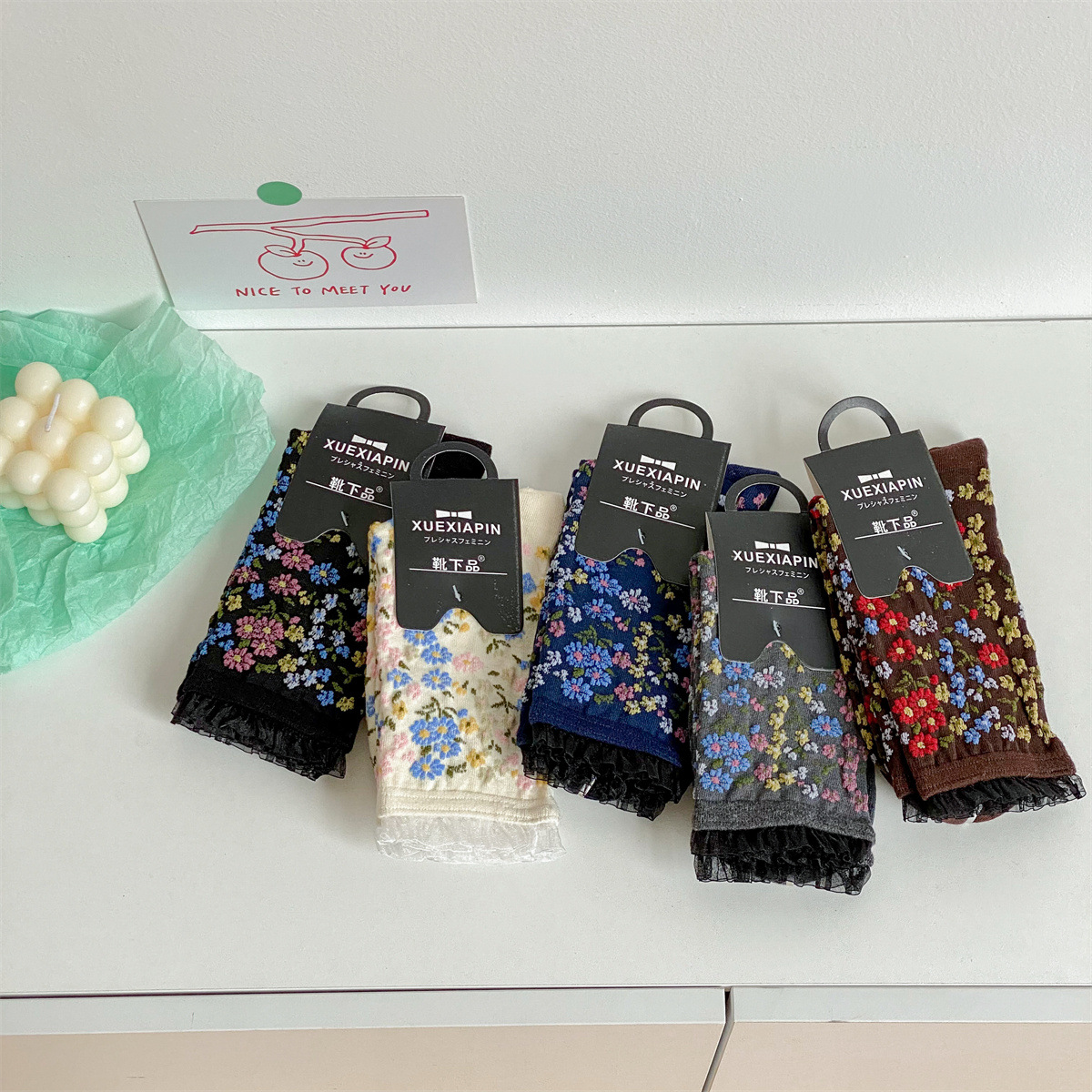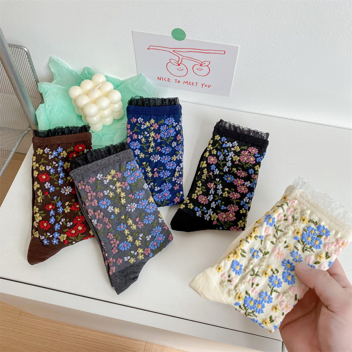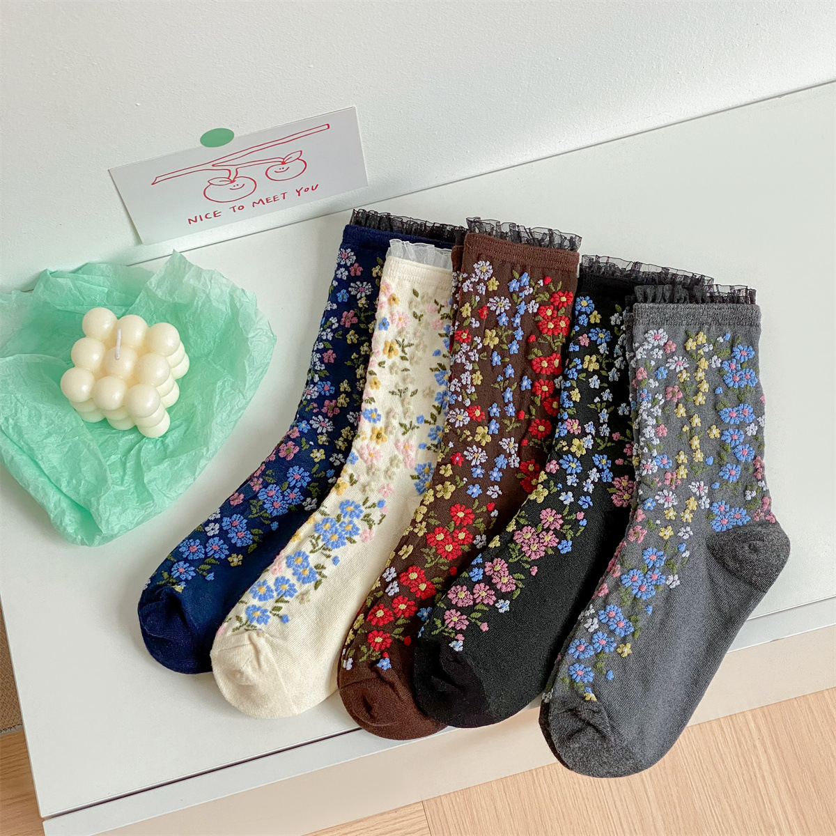 春秋の新作フレンチソックス、宮廷ロリータ風レトロ花柄ミドル丈レディースソックス、和風ルーズフィット綿ソックス