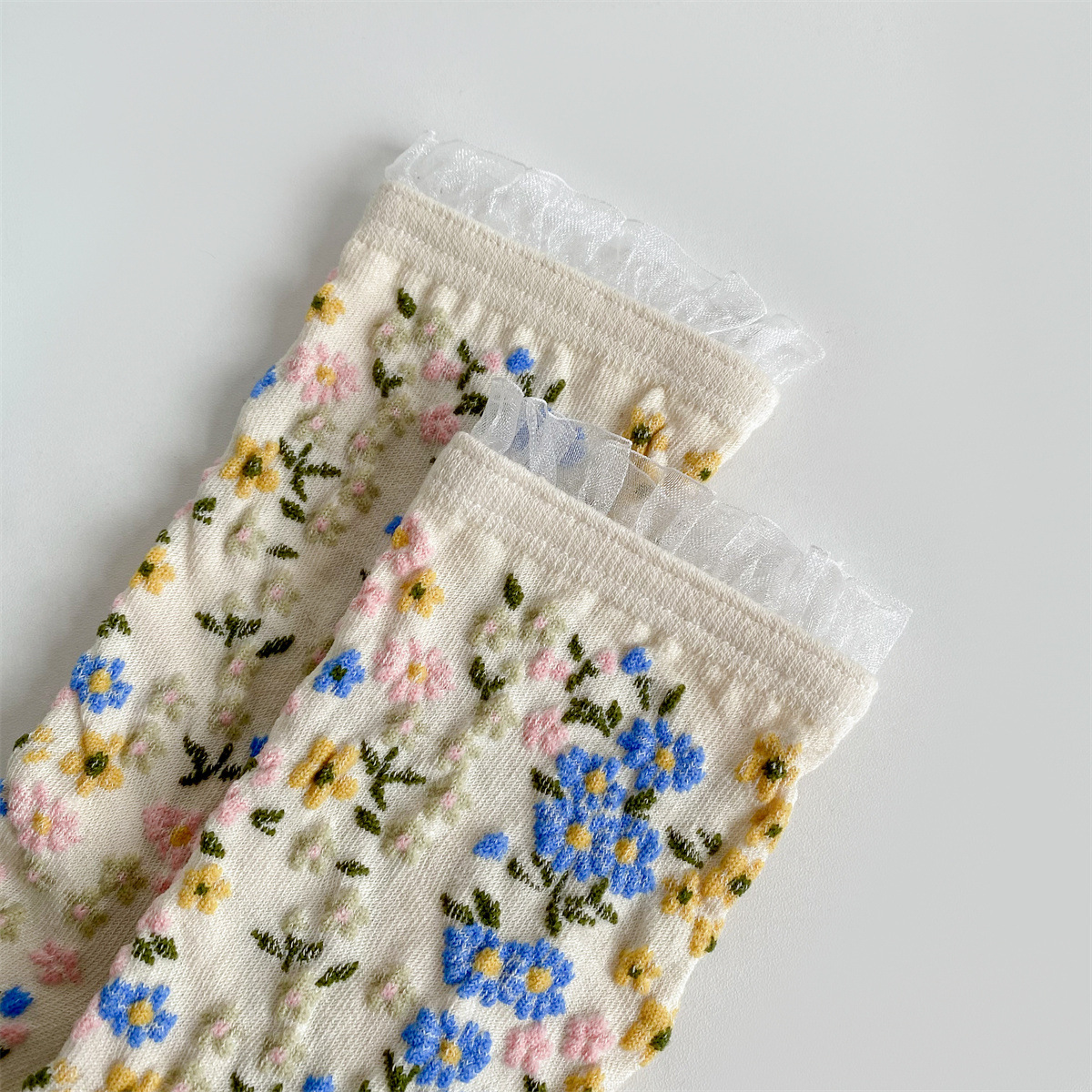 秋冬新品日韩系立体浮雕碎花中筒女棉袜宫廷风复古民族风文艺袜子